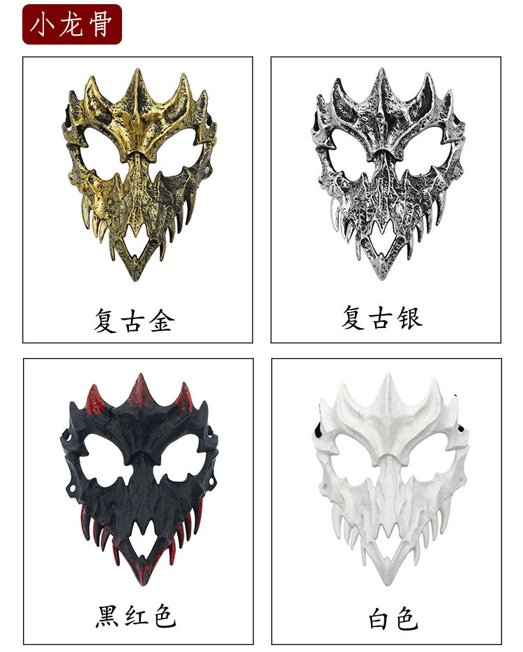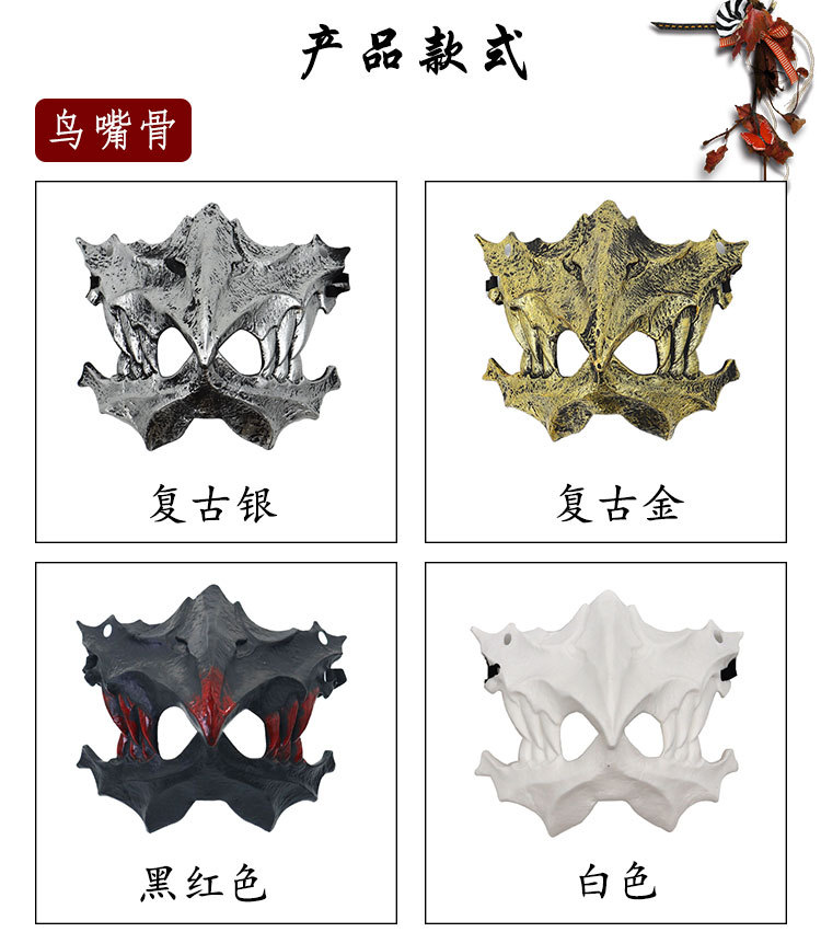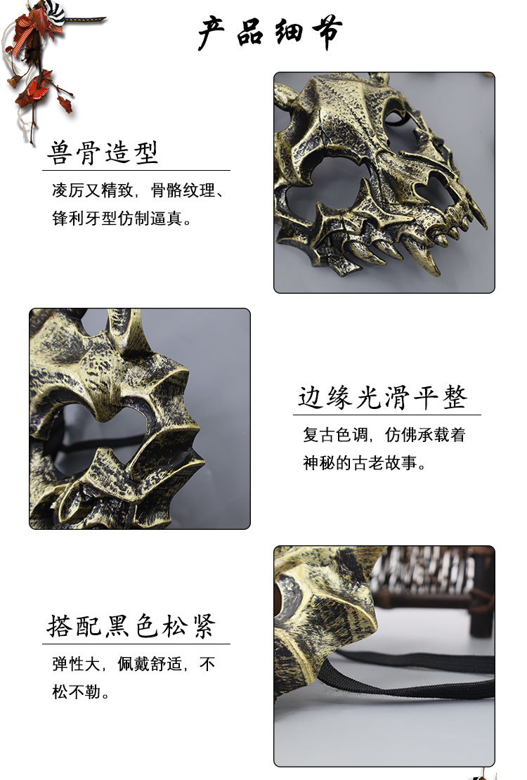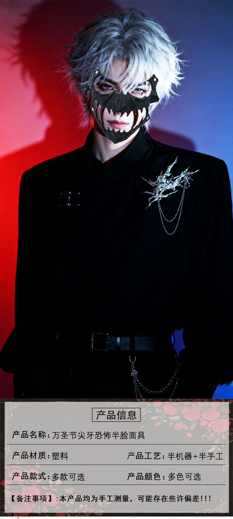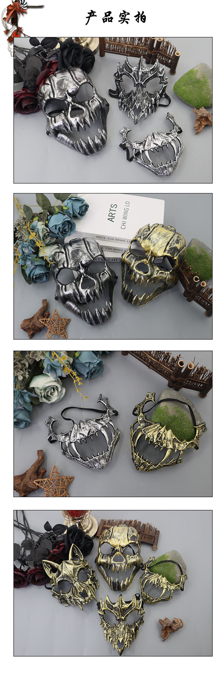 fiesta máscara de esqueleto dientes largos demonio esqueleto mitad cara máscara de lobo detrás máscara gigante disfraz de Halloween