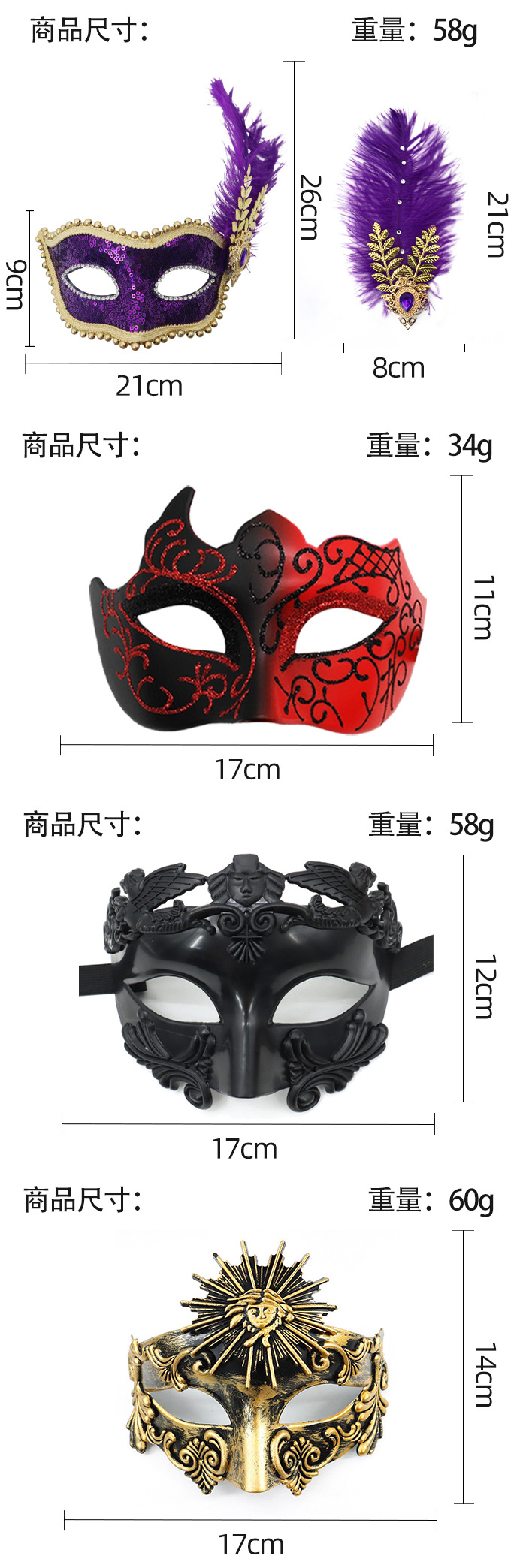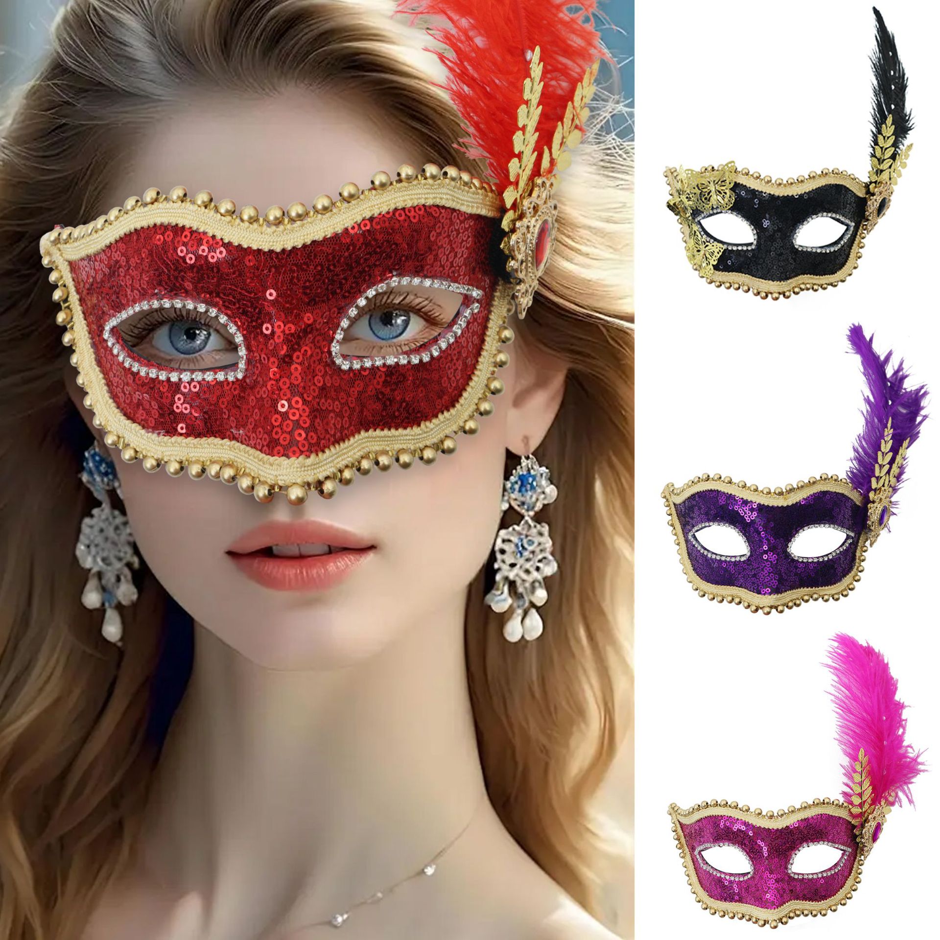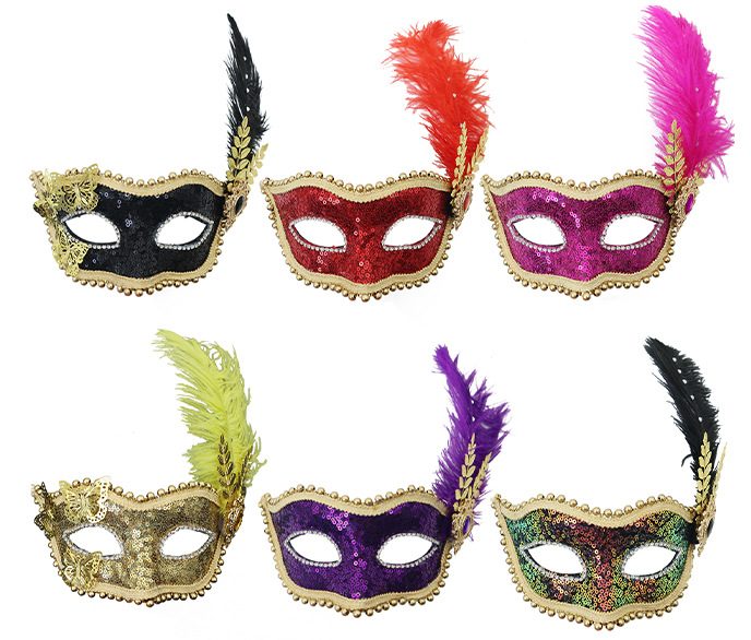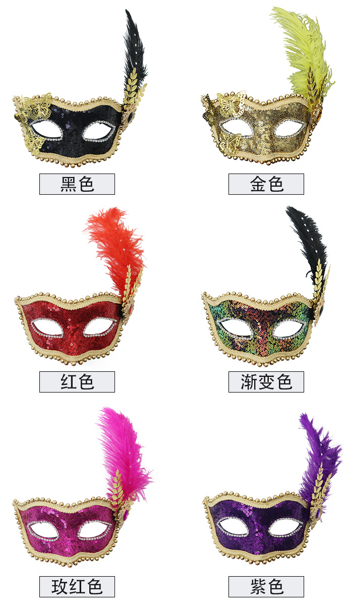 Amazon venta caliente carnaval borde lateral plumas metálicas mariposas retro máscaras de mitad de cara romana baile de maquillaje