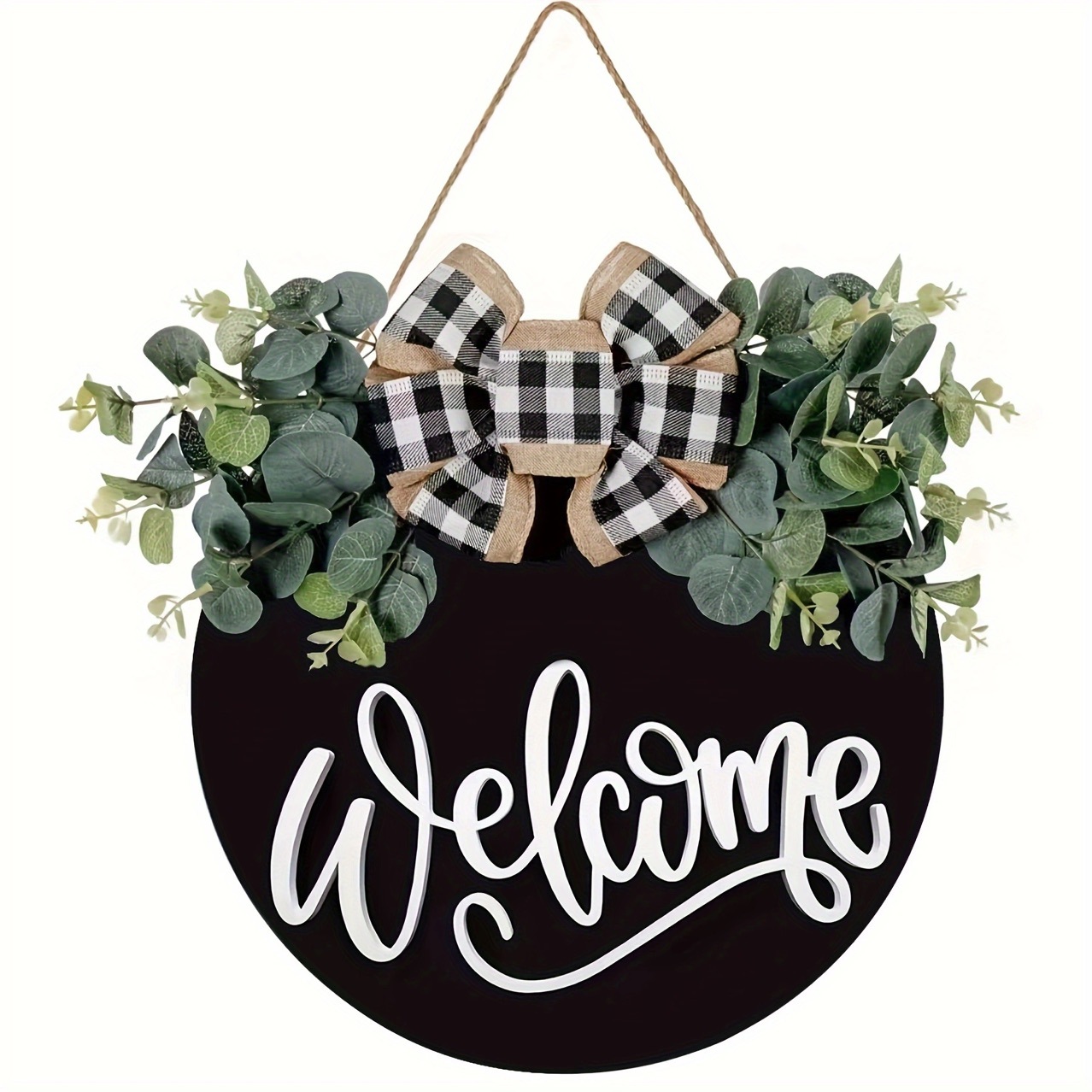 puerta de bienvenida negra puerta delantera bienvenida logotipo porche de granja decoración de puerta delantera bienvenida corolla colgante de madera redonda