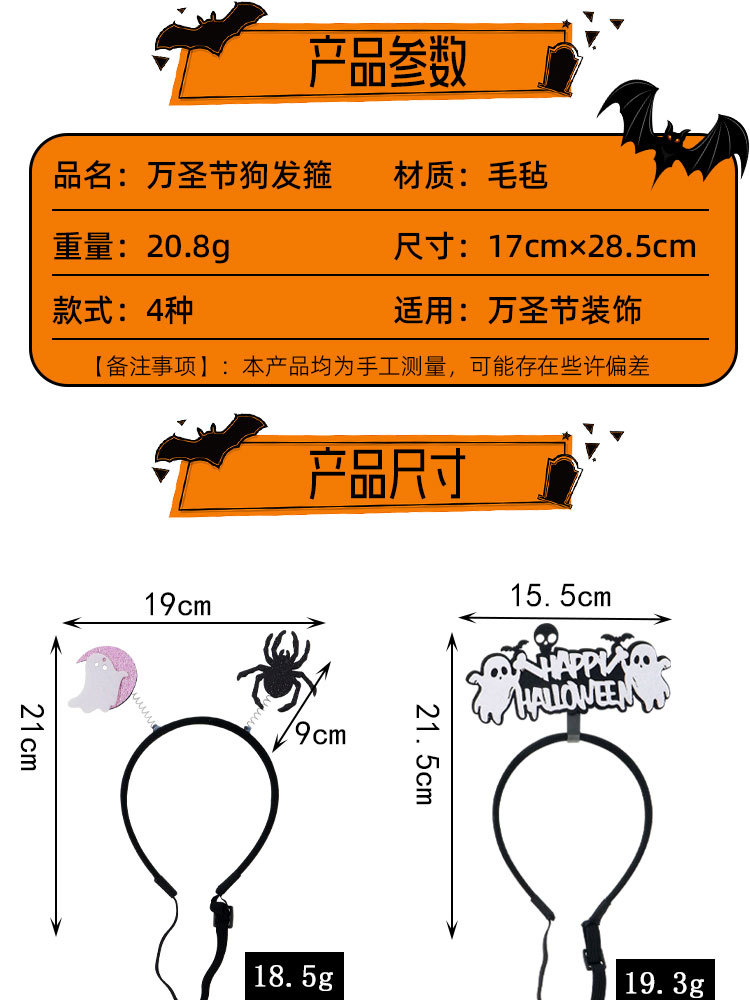 Halloween mascotas fieltro banda de cabello accesorios banda de cabello accesorios banda de cabello adorable cos banda de cabello artículos de fiesta Halloween
