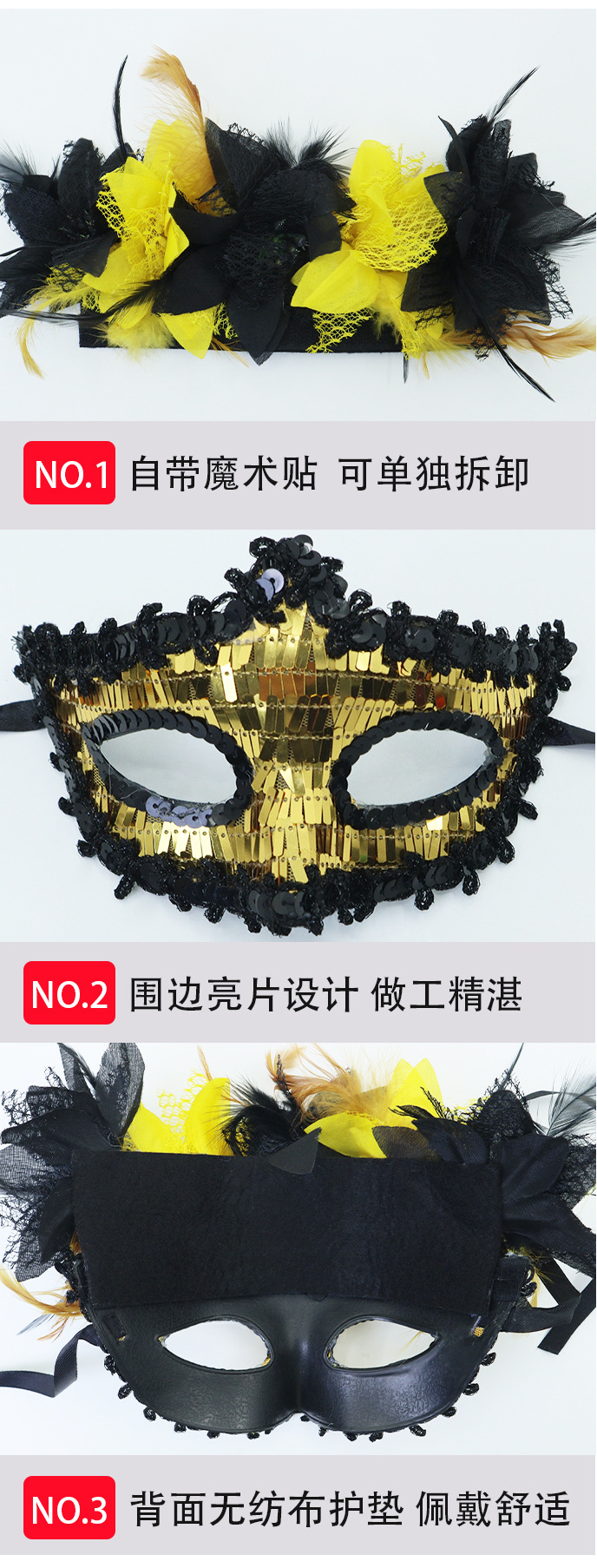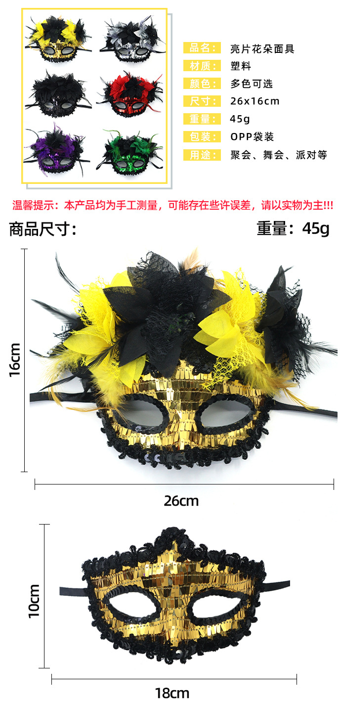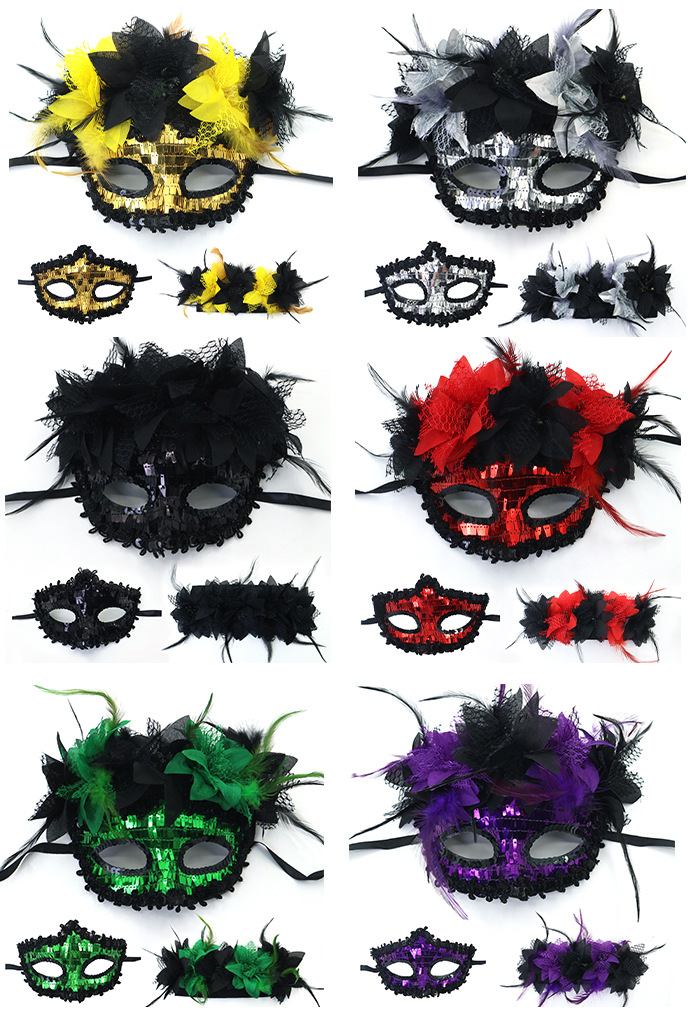 Transfronterizo exclusivo para Italia Venecia Feather Carnival Serie Lilium Half Face máscara separable