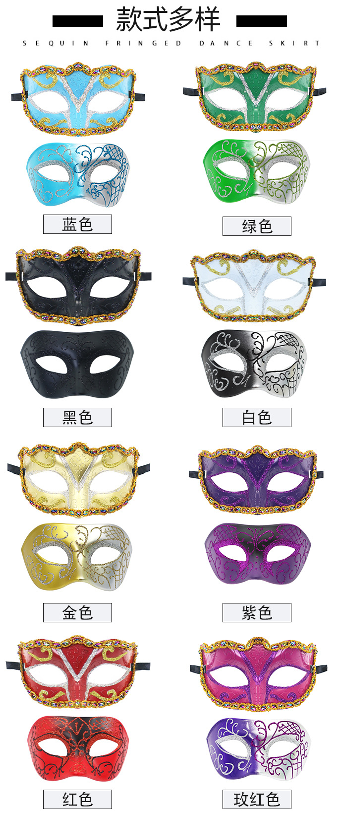 Amazon máscaras de fiesta de carnaval de venta caliente máscaras de baile unisex pintadas alrededor del borde de San Valentín
