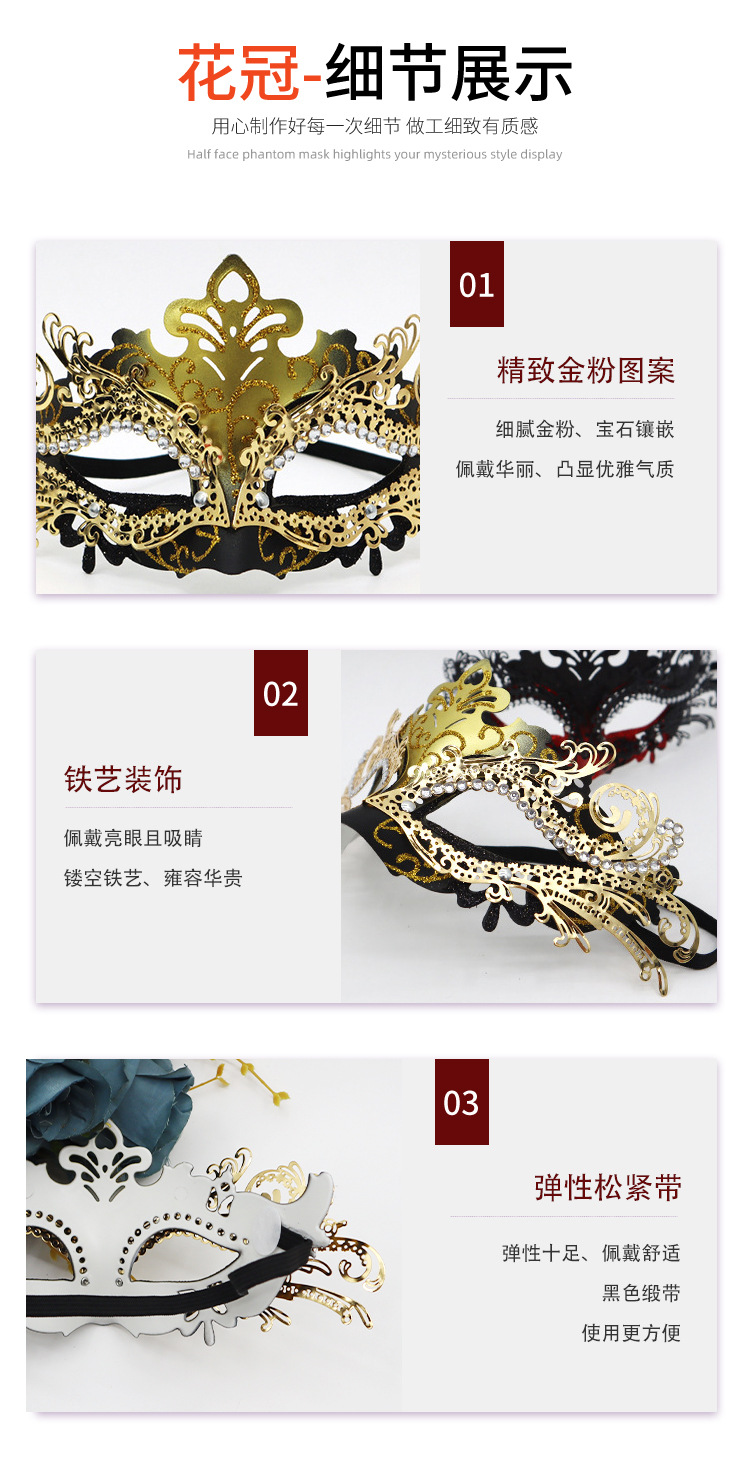 Ventas transfronterizas máscaras de hierro forjado de plástico de alta calidad máscaras de maquillaje de plástico pintadas máscaras de carnaval