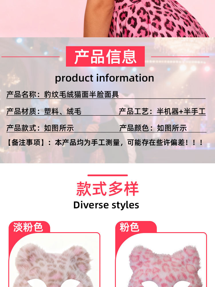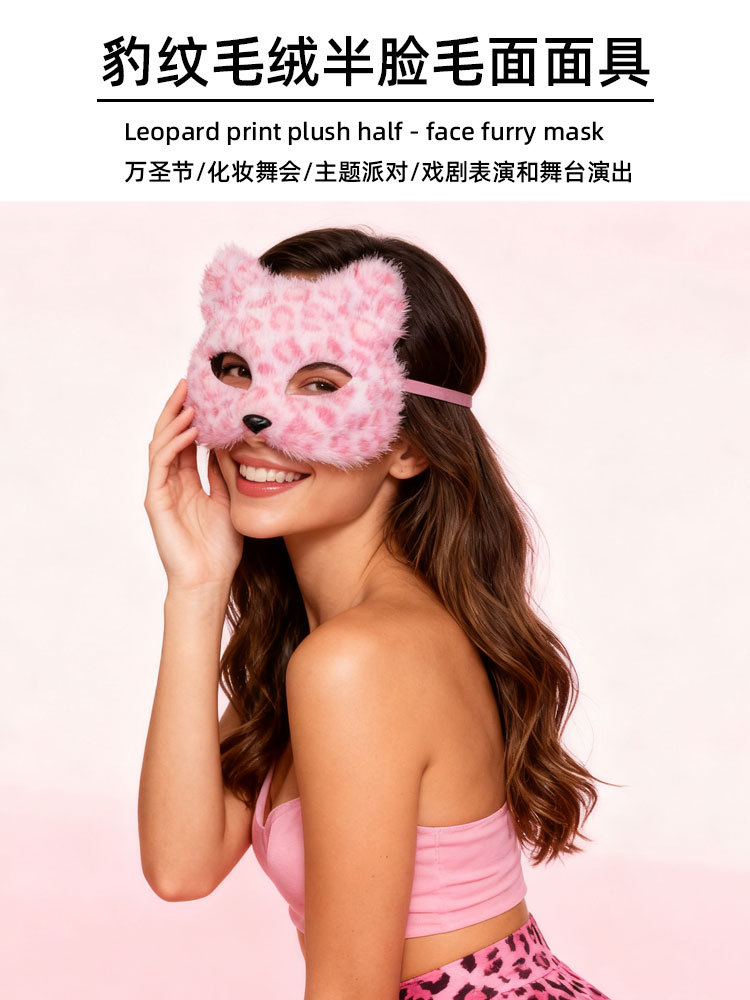 Máscaras transfronterizas de leopardo de peluche máscaras de gato animales semi-cara completa DIY pequeño zorro charlar Halloween al por mayor