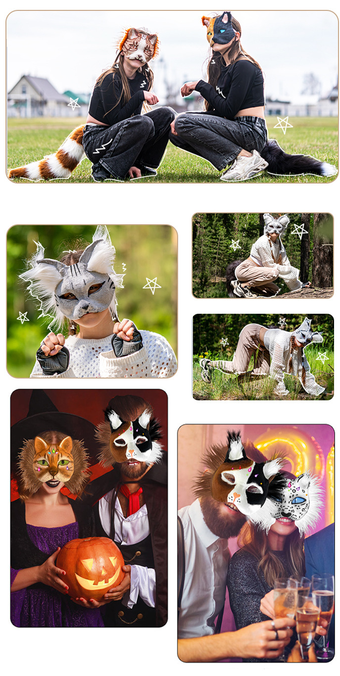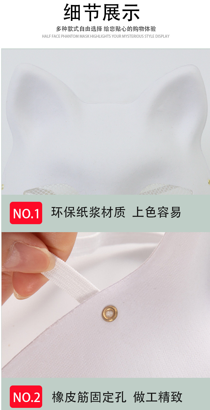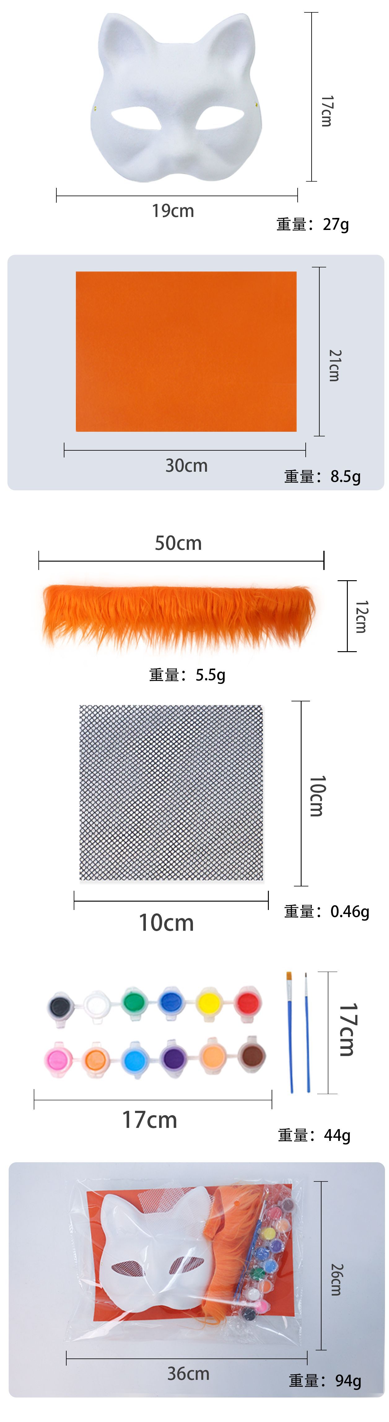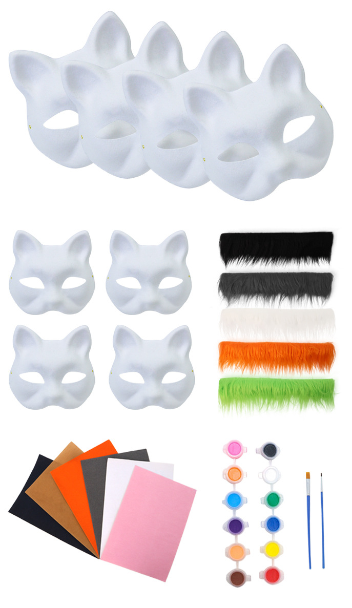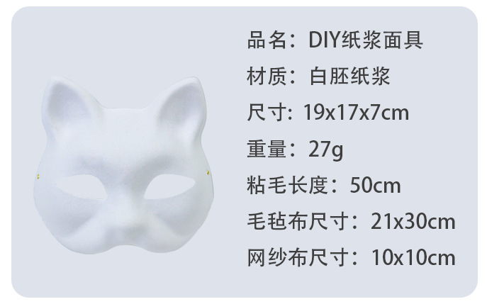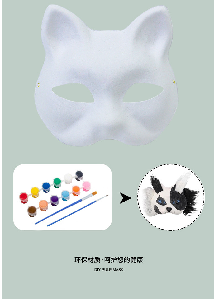 Cross-border Halloween nueva máscara de zorro para niños diy pulpa de embriones blancos máscara de mitad de cara máscara de pintura de colores máscara de animales