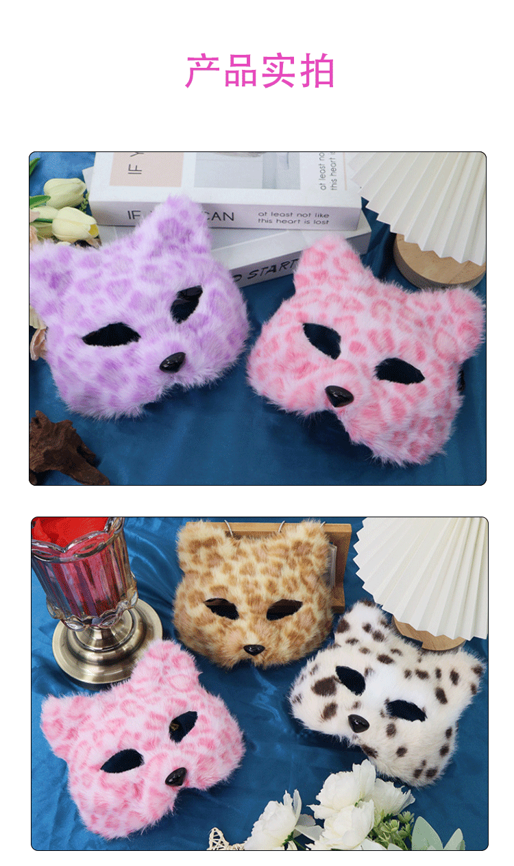 Máscaras transfronterizas de leopardo de peluche máscaras de gato animales semi-cara completa DIY pequeño zorro charlar Halloween al por mayor