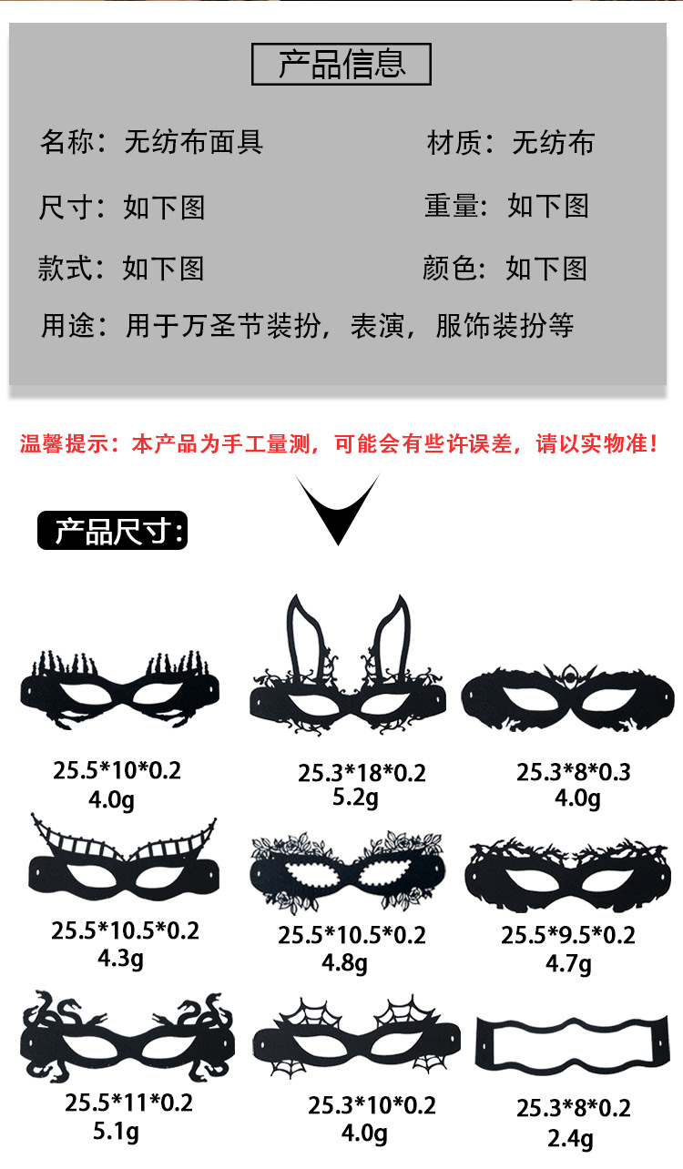 Transfronterizos nuevos no tejidos máscaras de felt negro máscaras modernas máscaras de felt minimalistas máscaras misteriosas de baile de maquillaje
