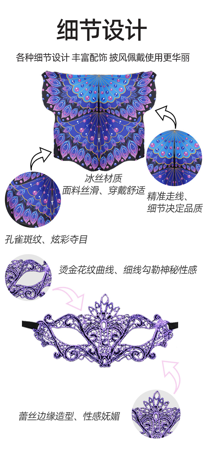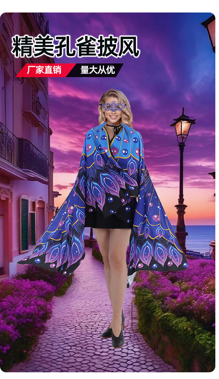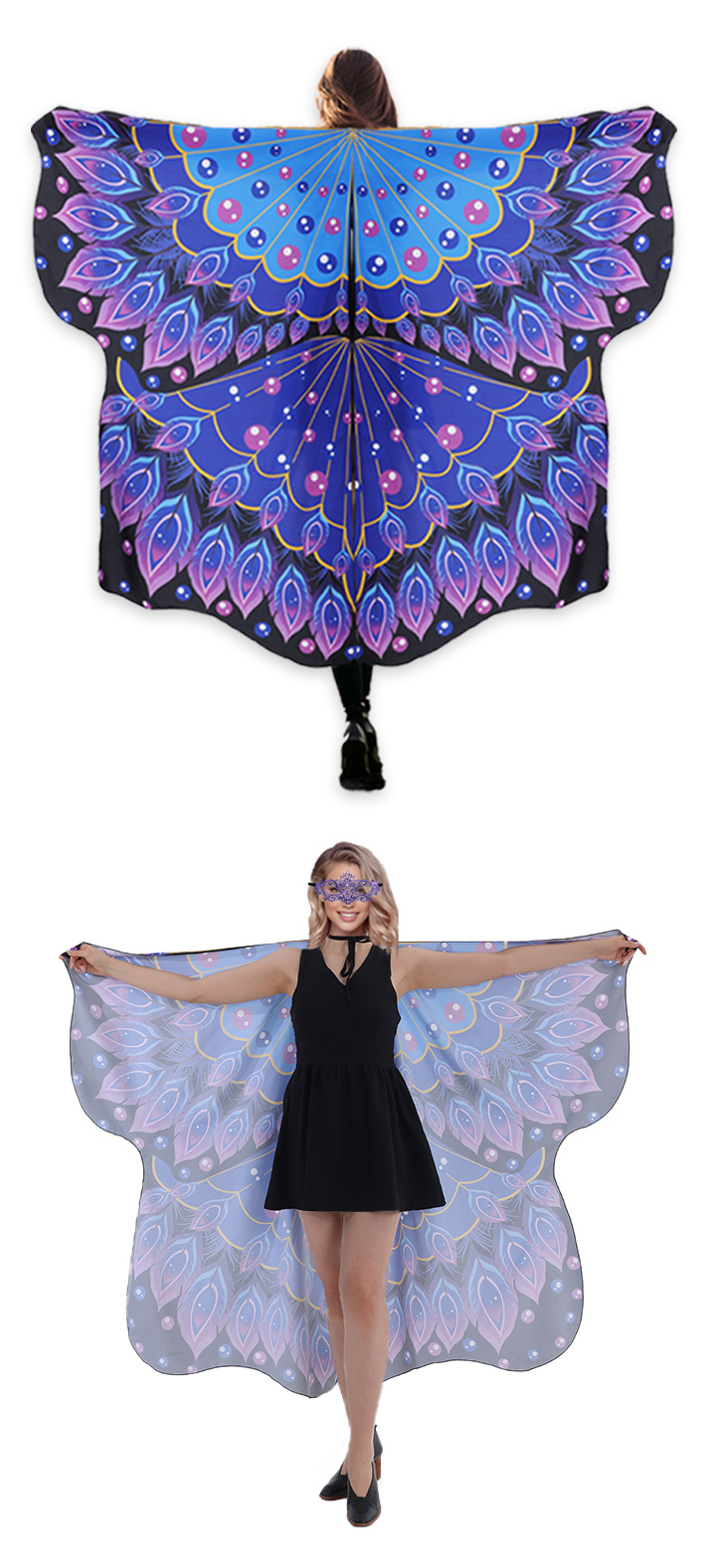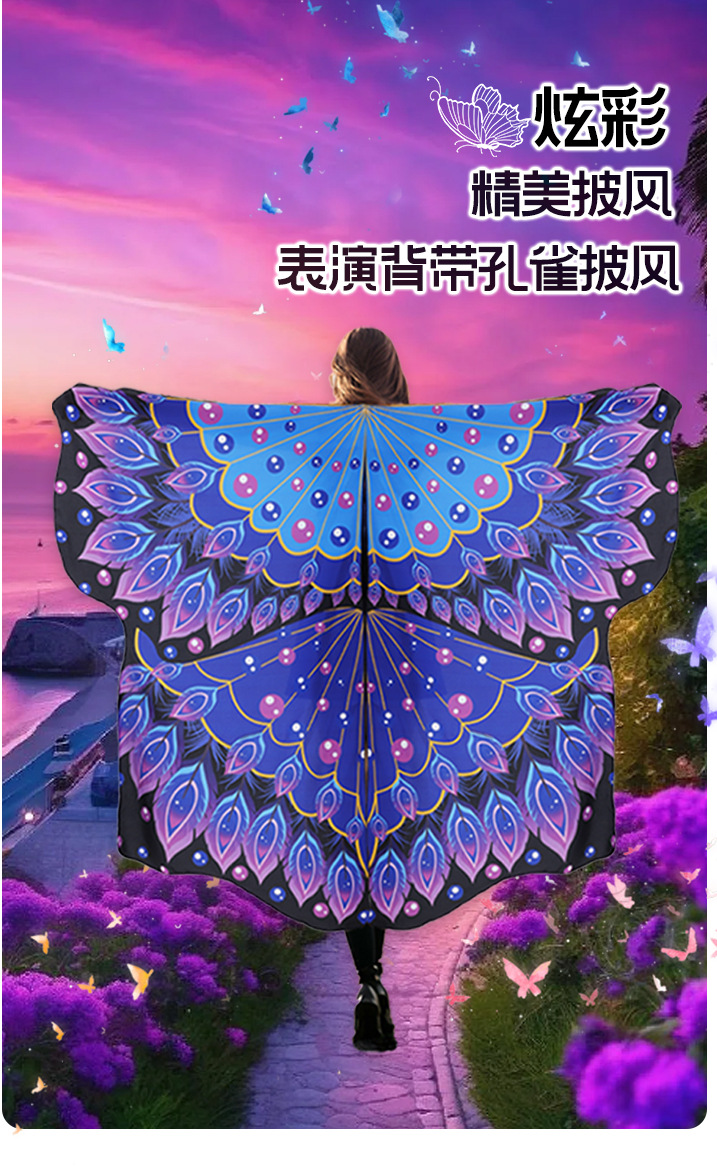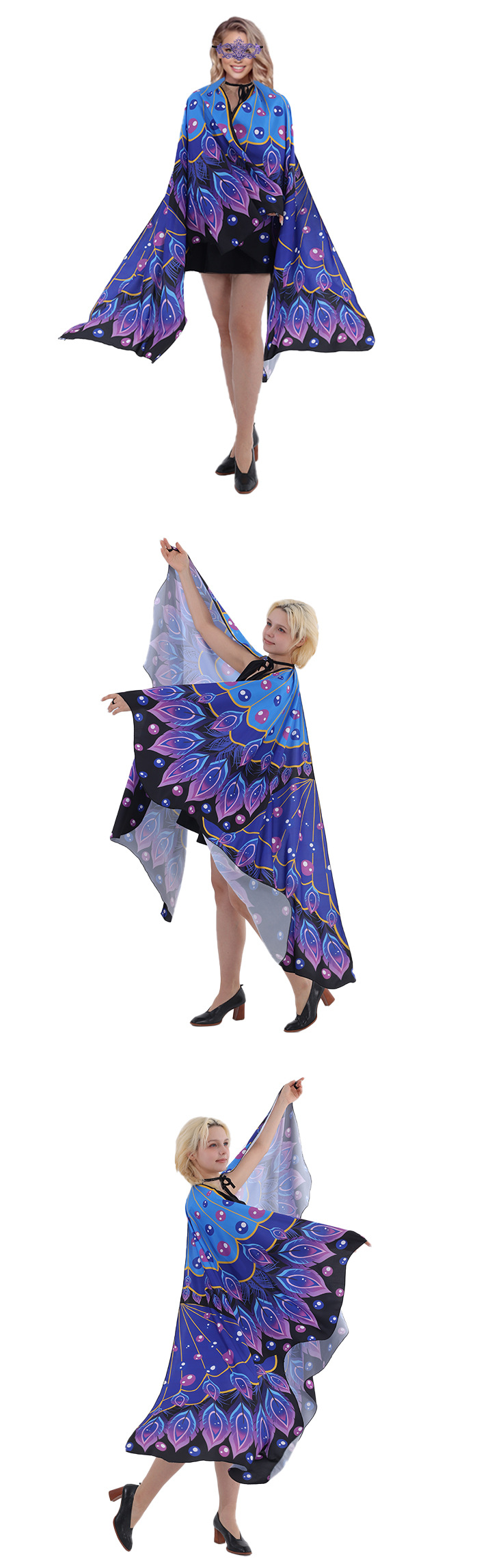 Pavo estrellado pantalla abierta capa de plumas alas capa impresión digital giratoria capa de punto accesorios de baile