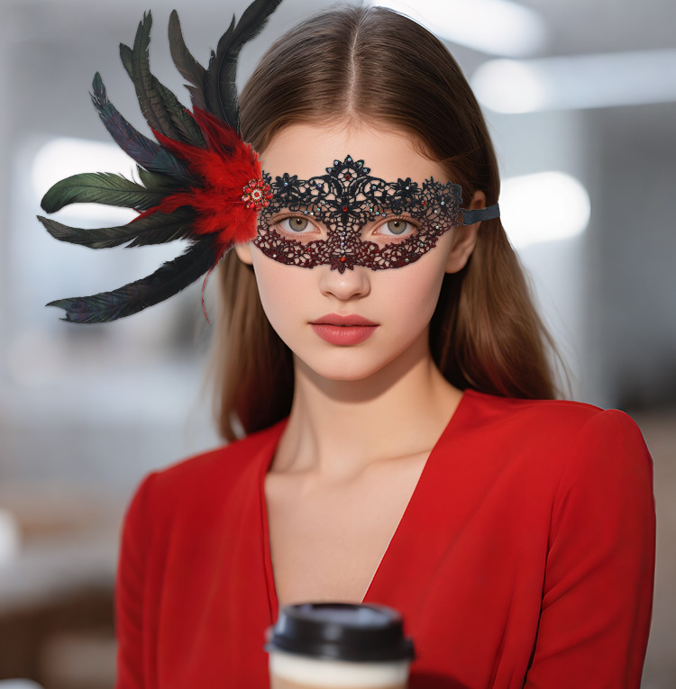 Máscaras de Halloween para adultos máscaras de color gris sexy plumas diamantes encaje mitad cara máscaras accesorios de fiesta