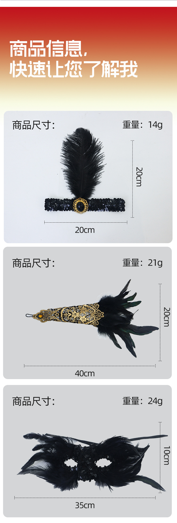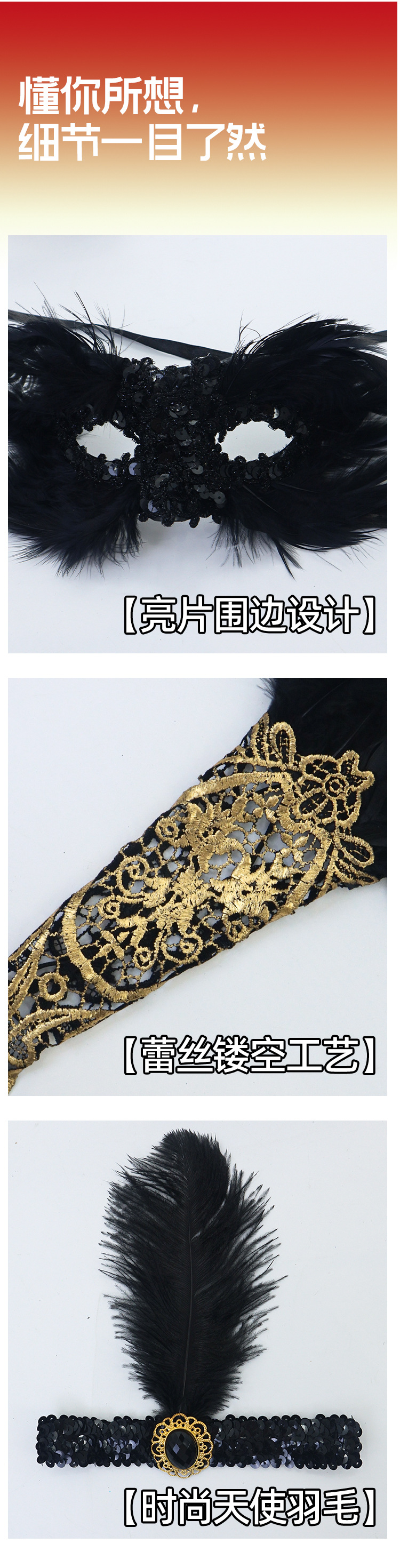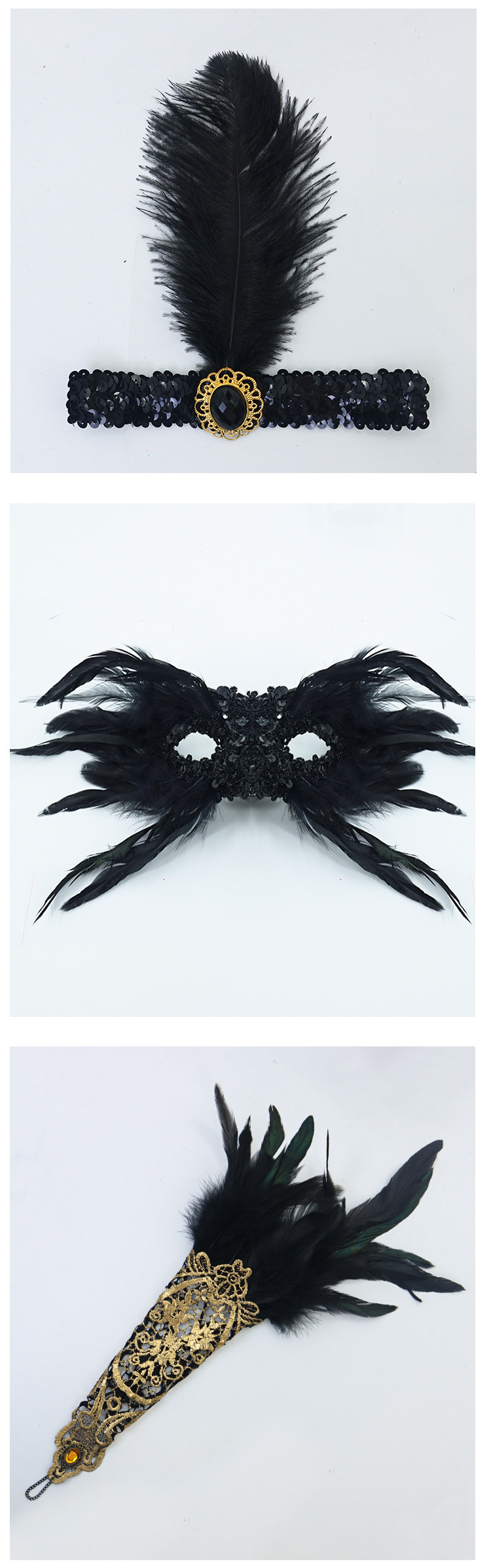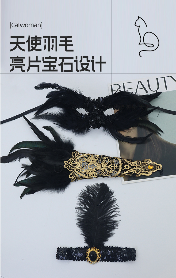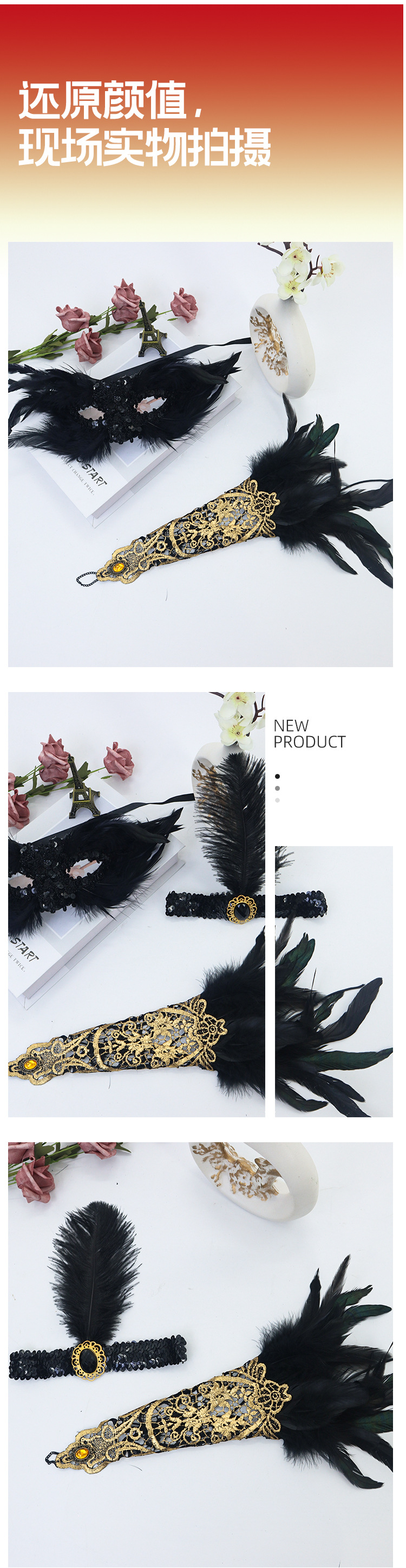 Máscara de plumas estilo gótico para fiesta, encaje calado, protector de brazo, diadema elástica con lentejuelas, estilo oscuro TK
