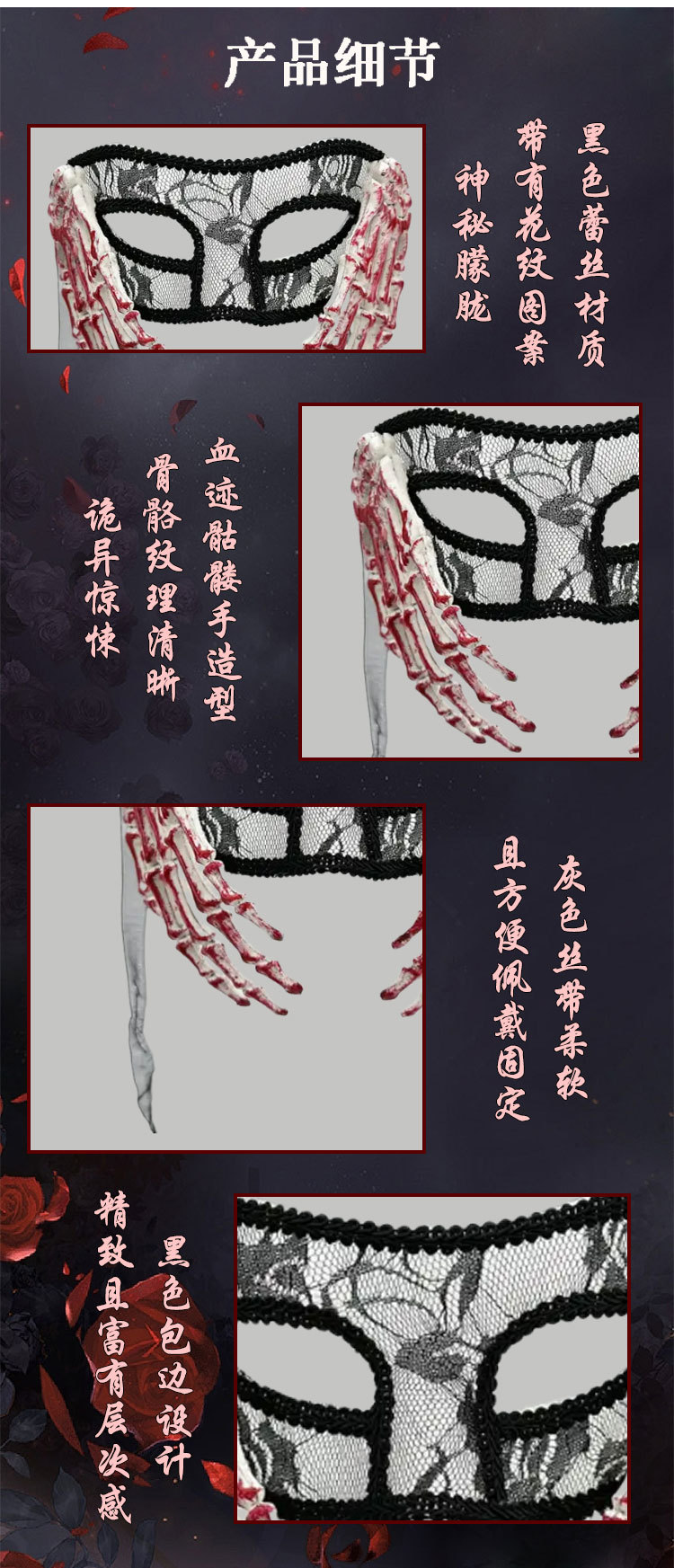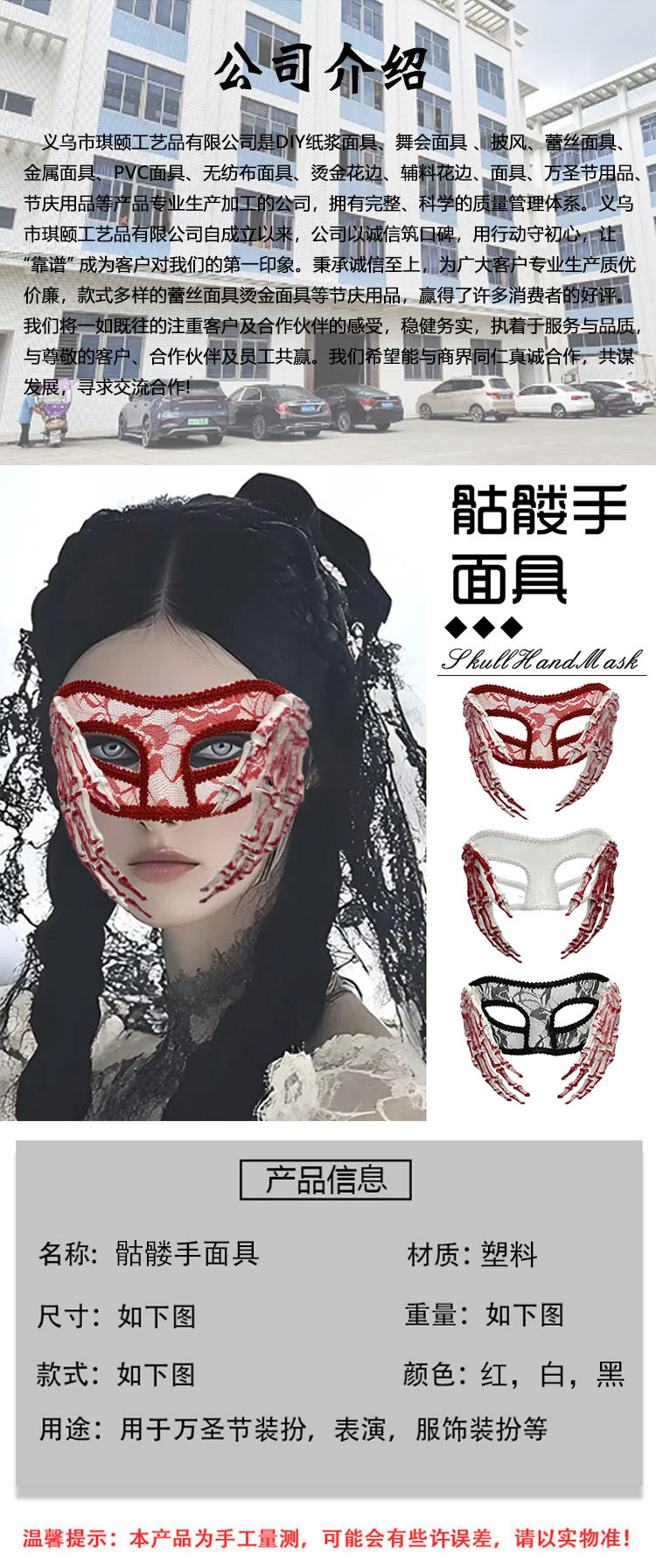 Amazon nuevo esqueleto mano máscara de encaje cabeza plana máscara translúcida Halloween accesorios de fiesta