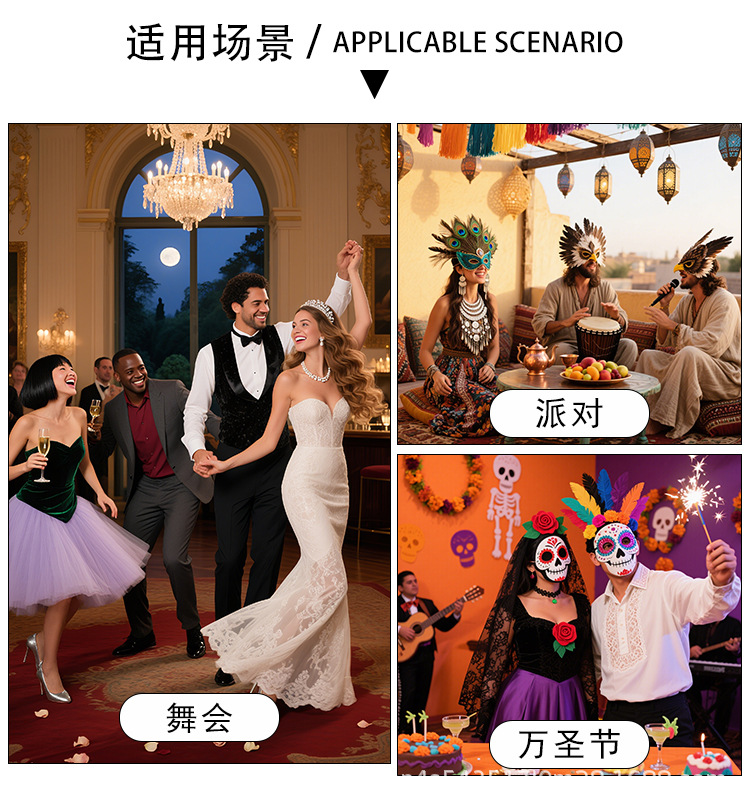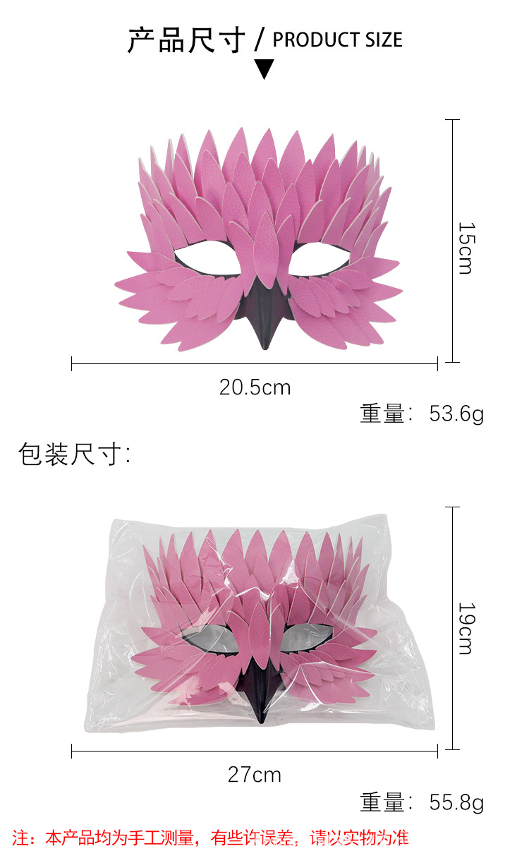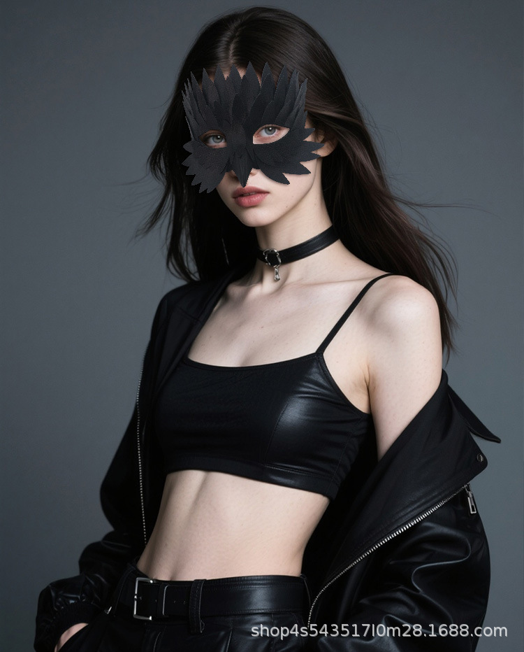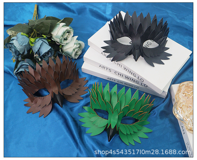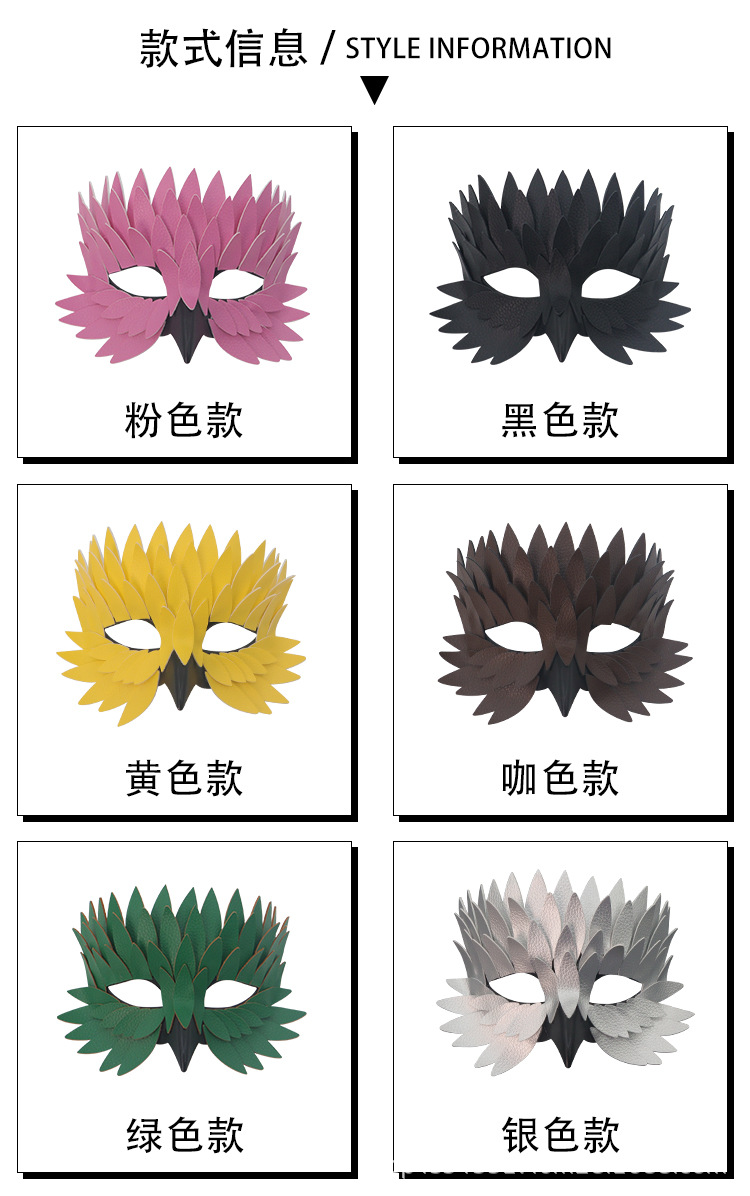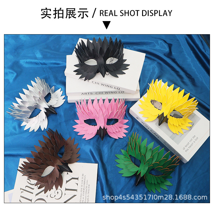 Halloween transfronterizo nueva máscara de plumas de boca de pájaro mitad cara cosplay accesorios de vestuario máscara de baile de maquillaje mujer