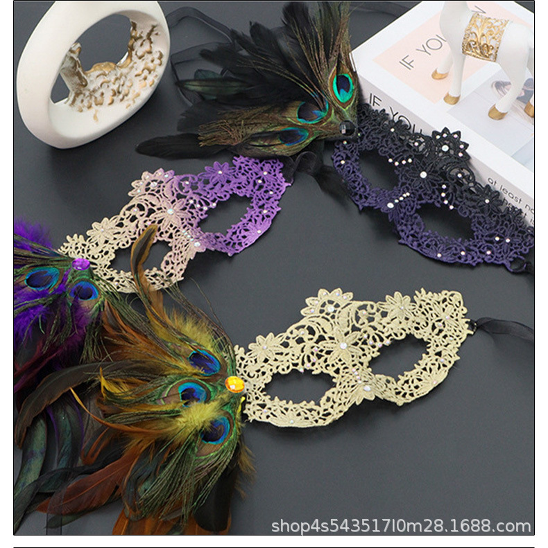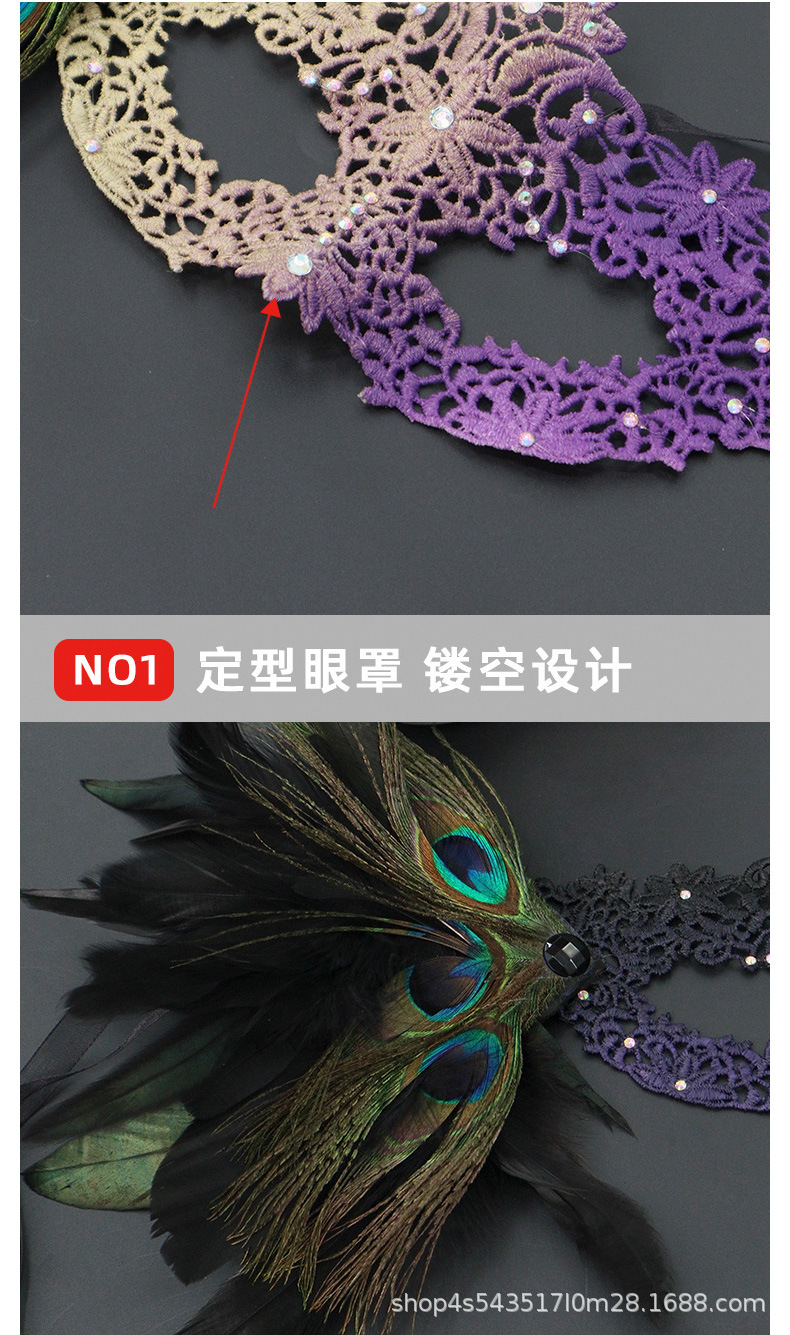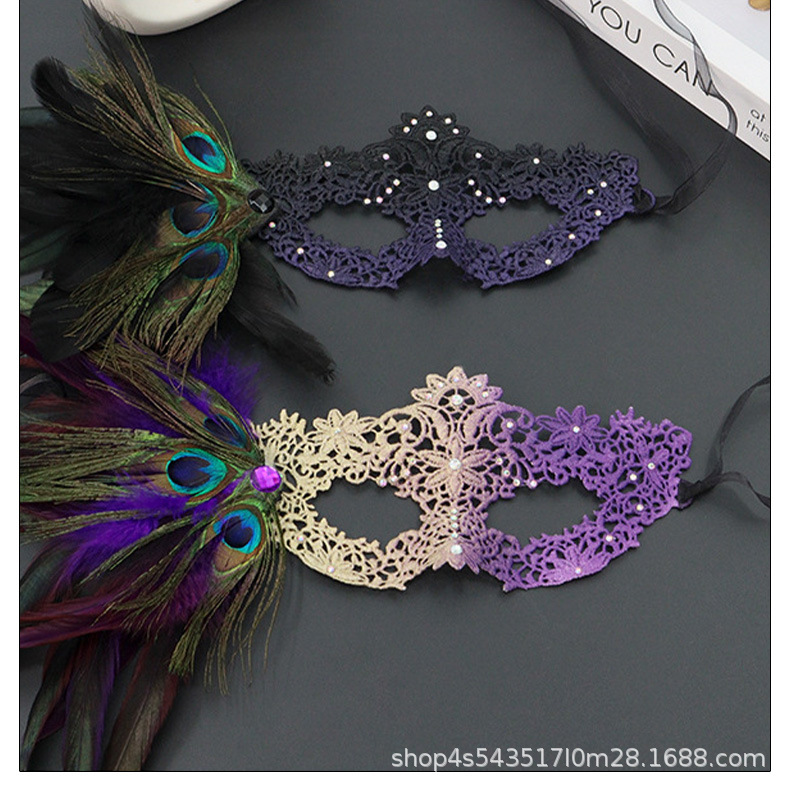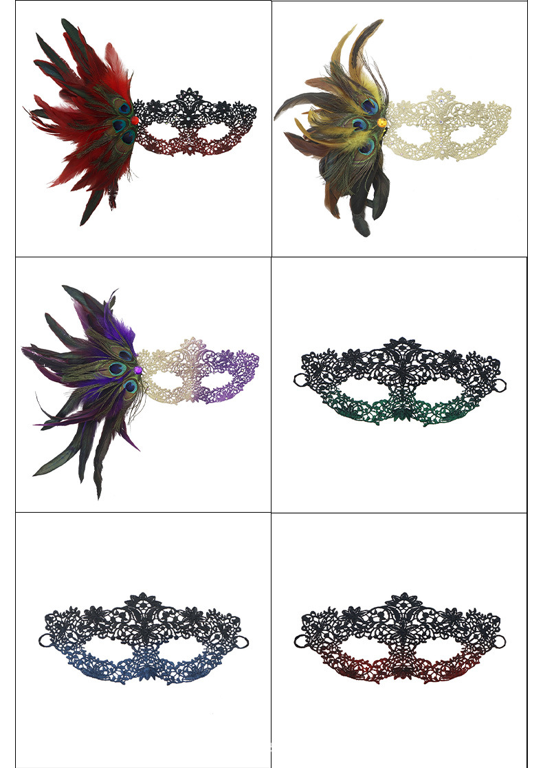 Máscaras de encaje de venta transfronteriza máscaras de plumas de mujer decoración gradiente máscaras de mitad de cara maquillaje de baile accesorios de vestuario sexy