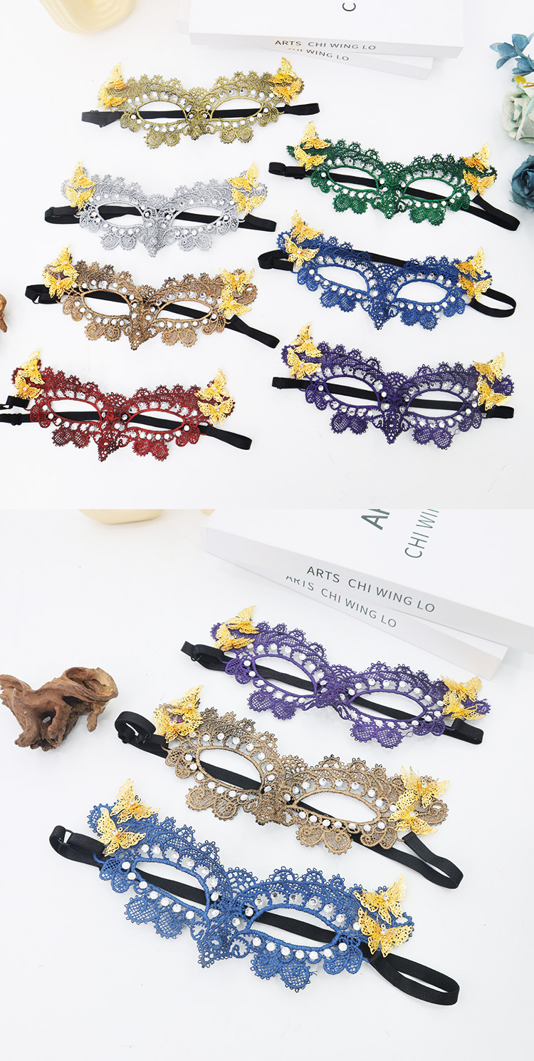 Fiesta de carnaval máscara de encaje mariposa metálica accesorios de decoración Halloween fiesta máscara de ojos