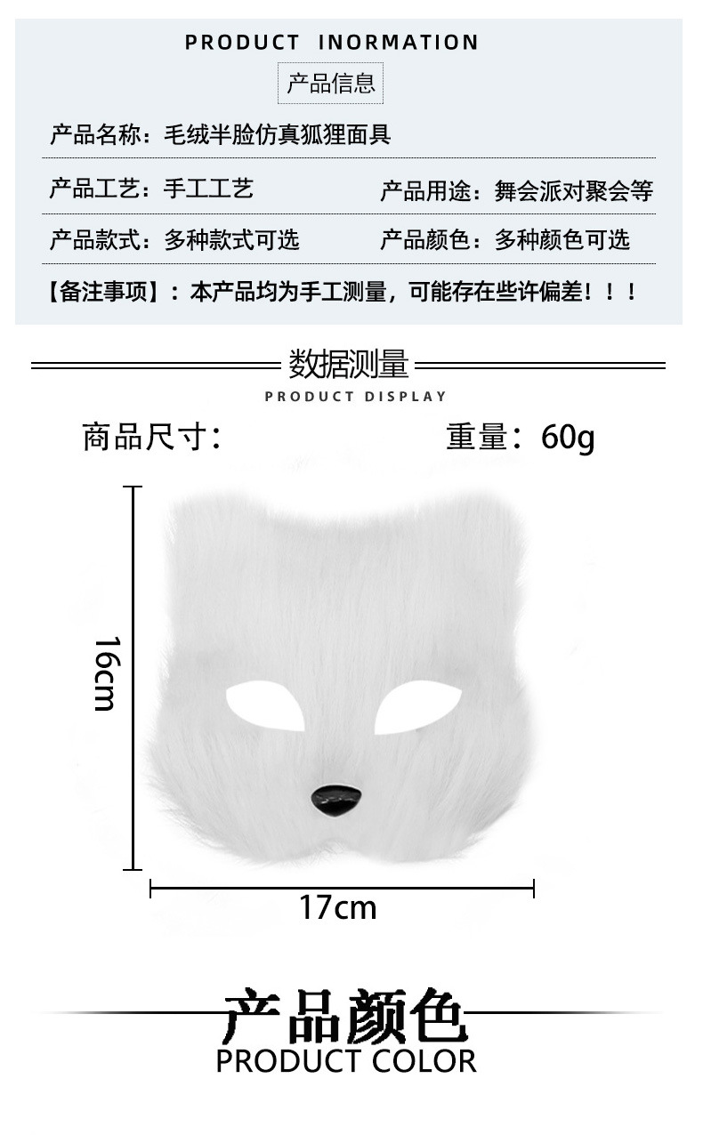 Ventas transfronterizas máscaras de zorro de pelo largo Halloween cos máscaras de cara de gato máscaras de cara de fiesta de baile