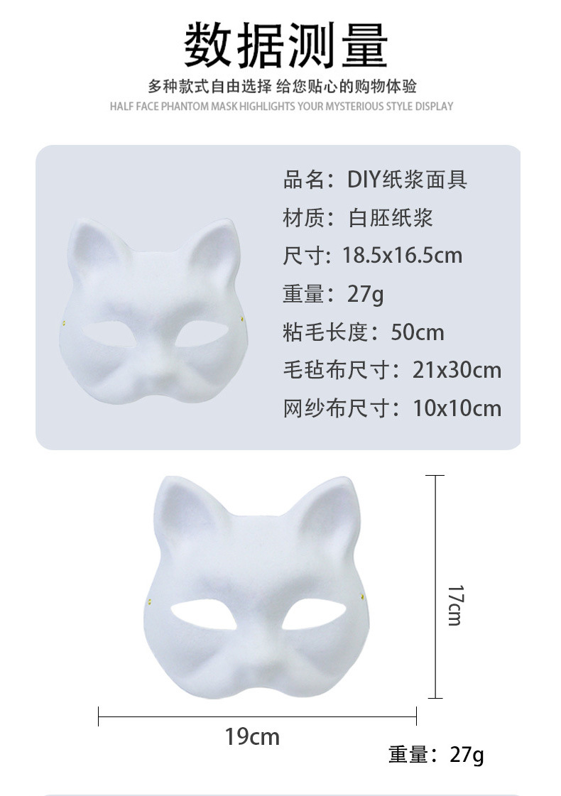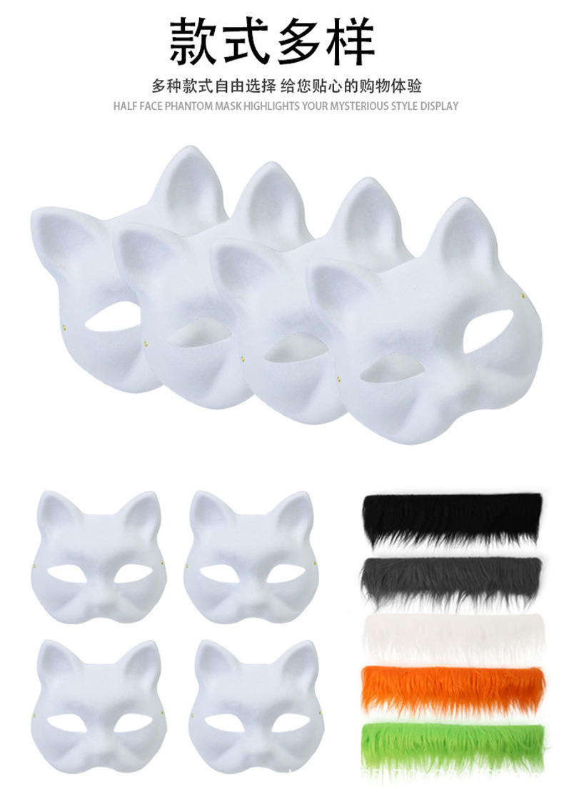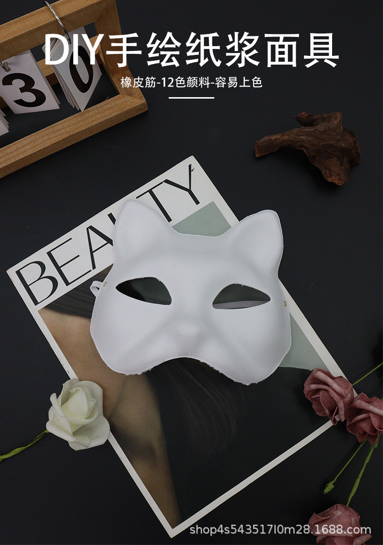 Amazon animal media cara máscara DIY con pelusa pintada a mano cara de gato de pulpa máscara de zorro máscara de fiesta máscara de vestir