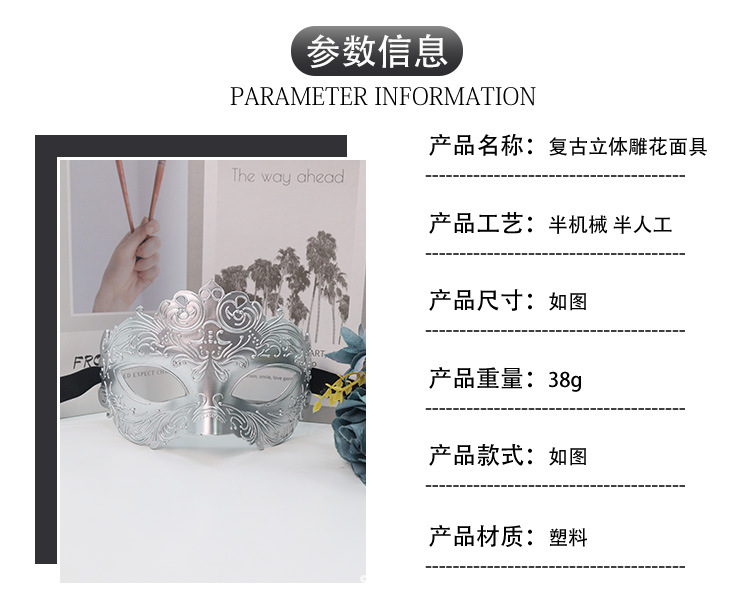 Amazon ventas calientes retro pintura aerosol ópera espectáculo medio rostro máscara de alto nivel props de baile máscara de plástico