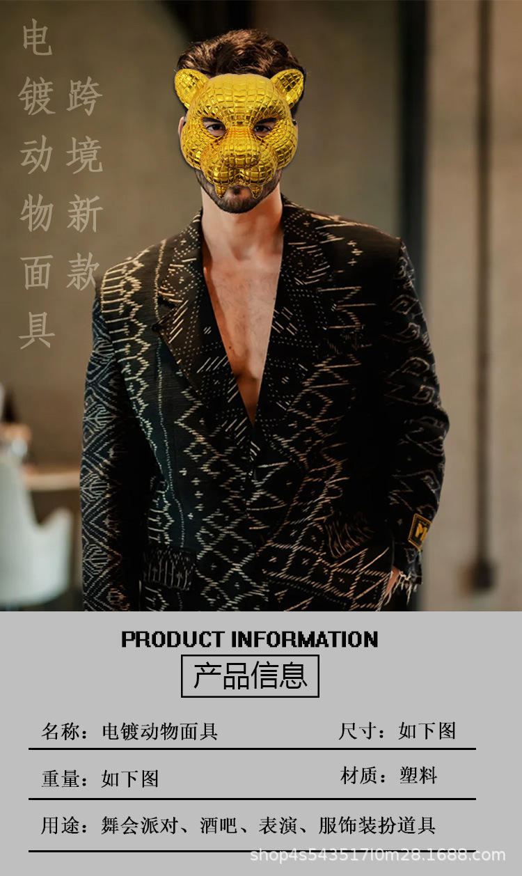 Ventas transfronterizas de Halloween leones y leopardos galvanizados props de simulación de animales de baile disfraz cos máscara