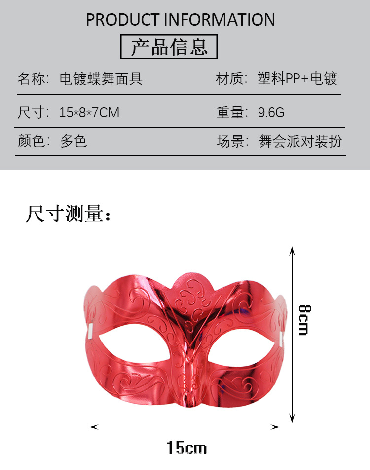 Nuevo carnaval transfronterizo máscara de galvanoplastia de alta gama mascarada accesorios de fiesta máscara retro máscara reflectante