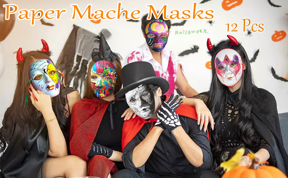 Amazon venta caliente Halloween blanco máscara de pulpa para hombres y mujeres fiesta veneciana máscara de mascarada