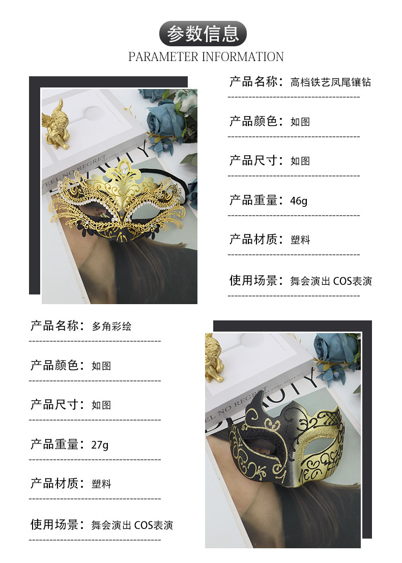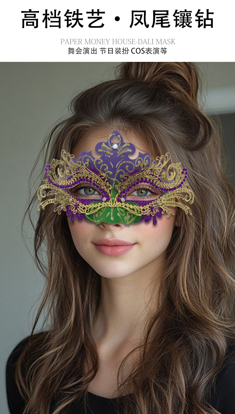 Máscaras de media cara pintadas con diseño de cola de fénix con incrustaciones de diamantes de Amazon Iron Art para hombres y mujeres, máscaras de disfraces para fiestas de Halloween.