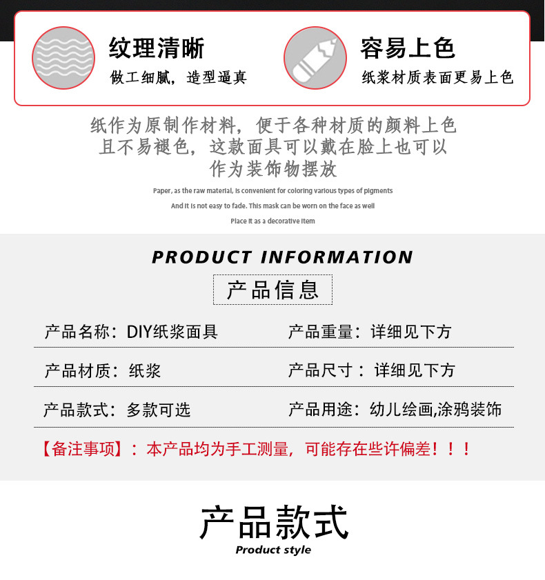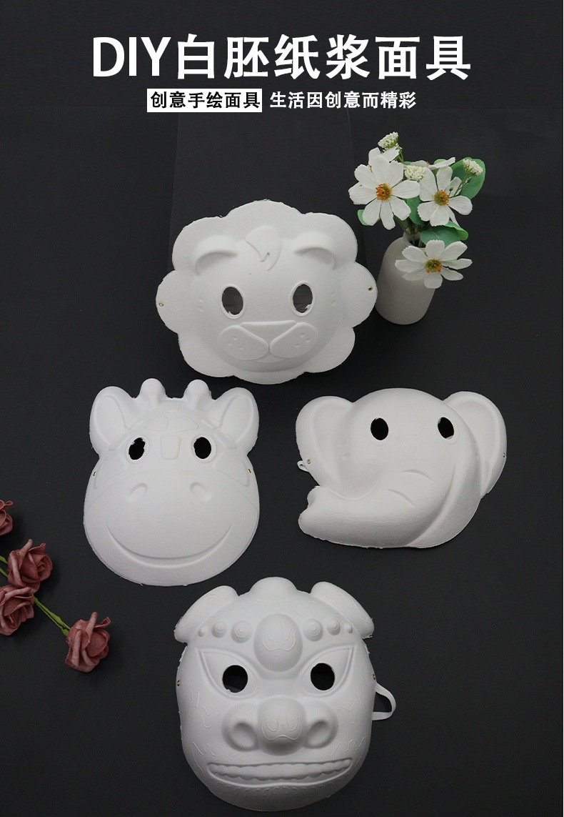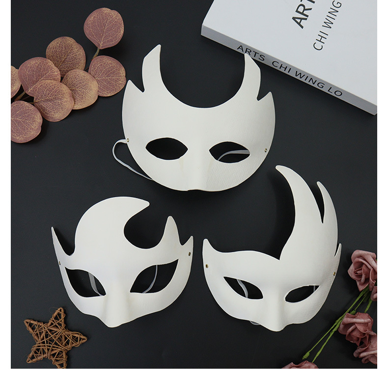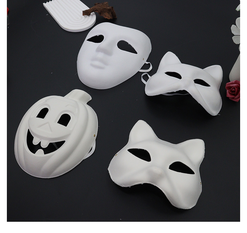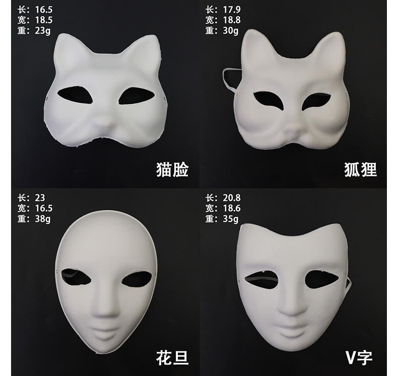 En blanco pintado a mano cara de gato máscara de zorro máscara de pulpa DIY máscara de cara entera máscara de mitad de cara máscara de dibujo infantil