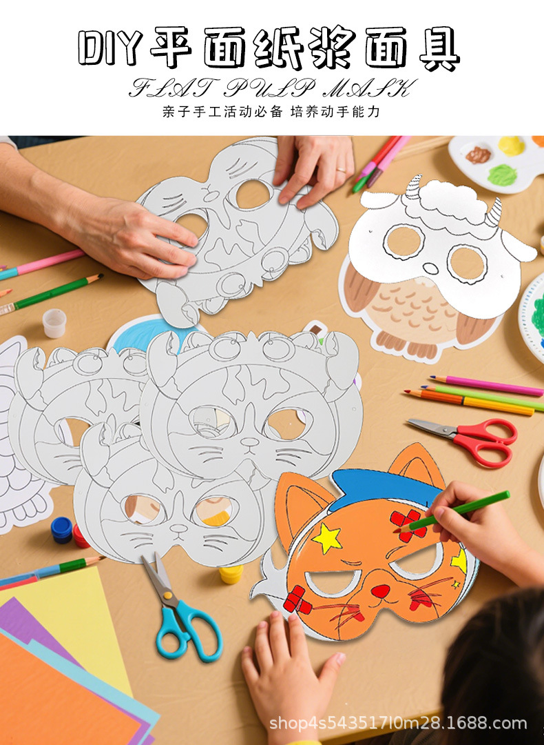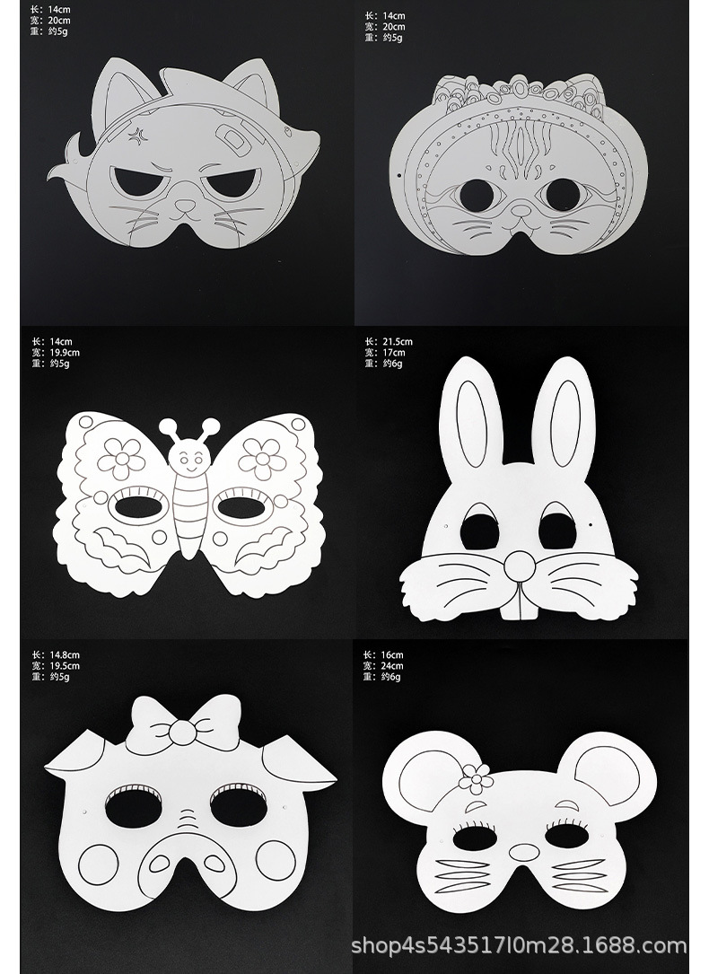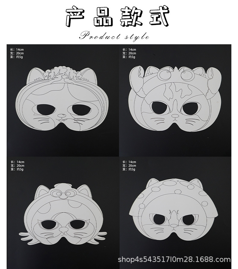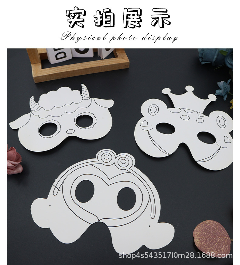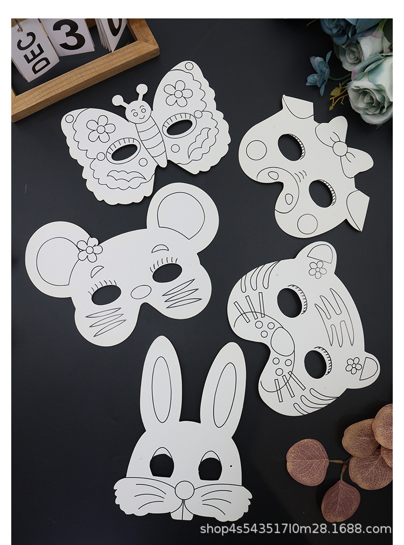 La tarjeta de papel de bricolaje se puede colorear Carnival nueva máscara para niños pintura media cara máscara de rendimiento de fiesta al por mayor