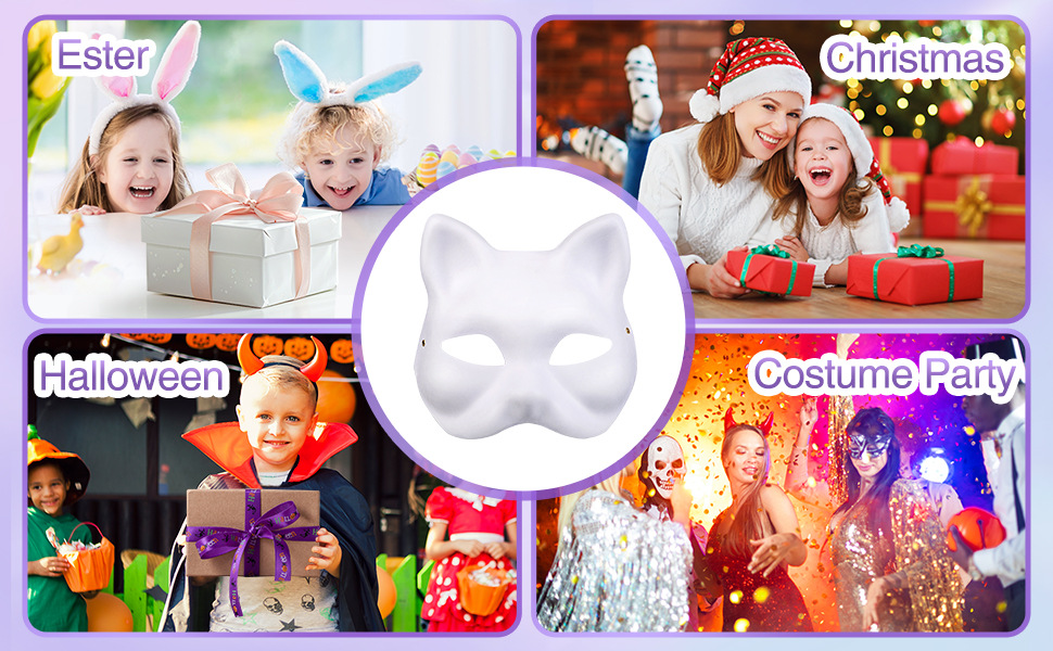 Amazon bricolaje pintado a mano graffiti cara de gato máscara de pulpa en blanco conjunto de material de actividad para padres e hijos de jardín de infantes