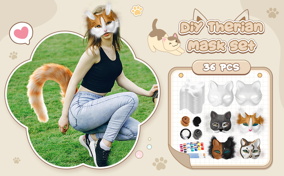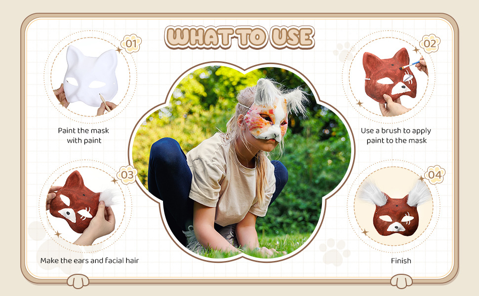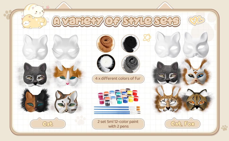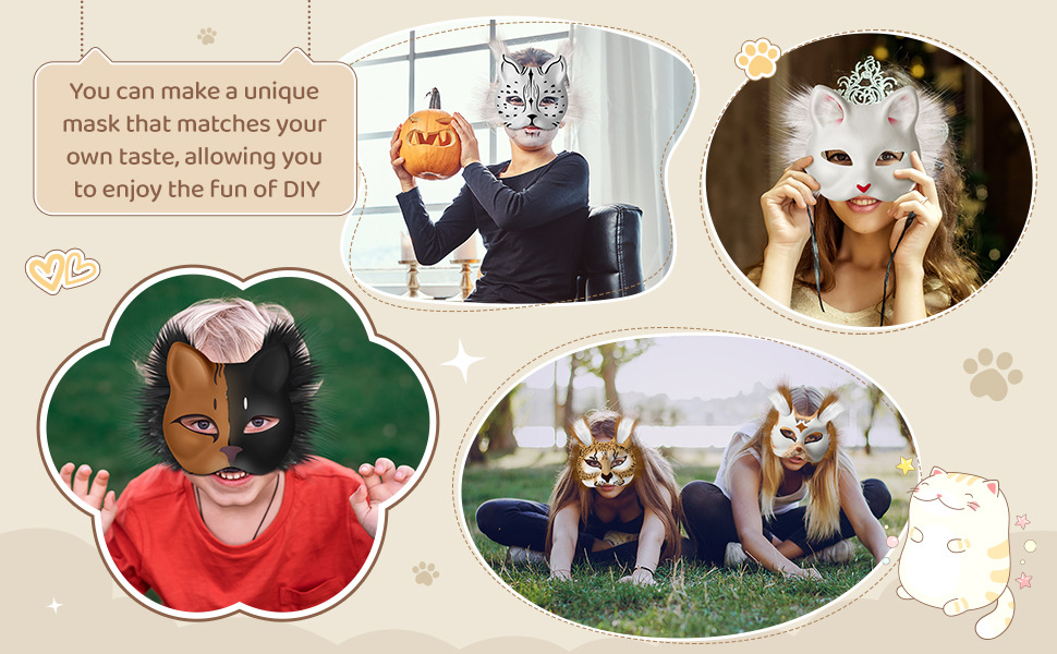 Amazon venta caliente niños bricolaje máscara de gato material conjunto de cara de gato de Halloween zorro máscara de graffiti pintada a mano