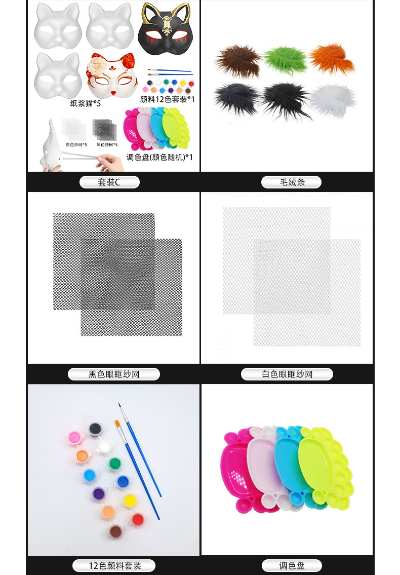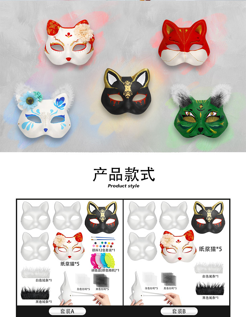 Máscara de cara de gato de Amazon para niños DIY pintada a mano blanca máscara de cara de gato de pulpa ecológica máscara de pintura de Halloween