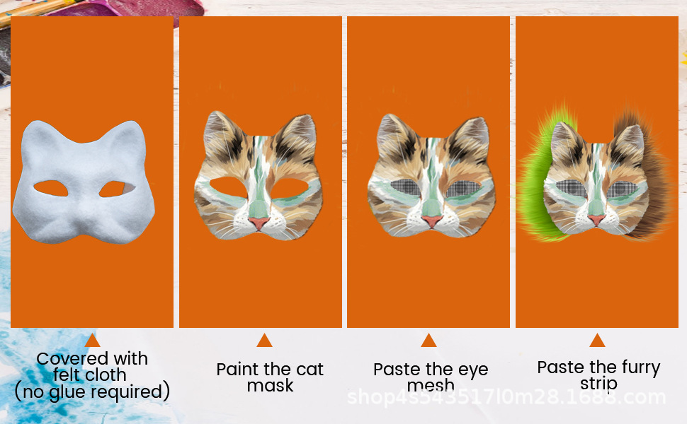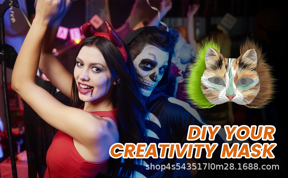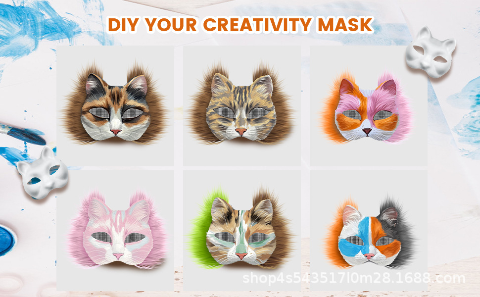 Amazon DIY Cat Face Mask Máscara de pulpa en blanco con traje de tela de fieltro Masaje Juego de rol