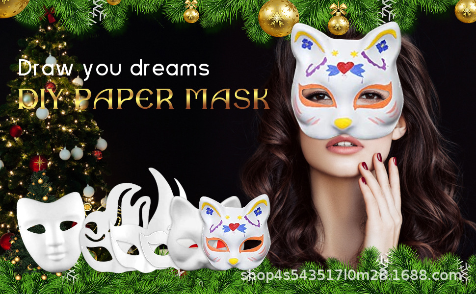 Máscaras en blanco para Halloween más vendidas de Amazon, máscaras de pulpa pintadas a mano, máscaras blancas para pintar uno mismo, accesorios para graffiti