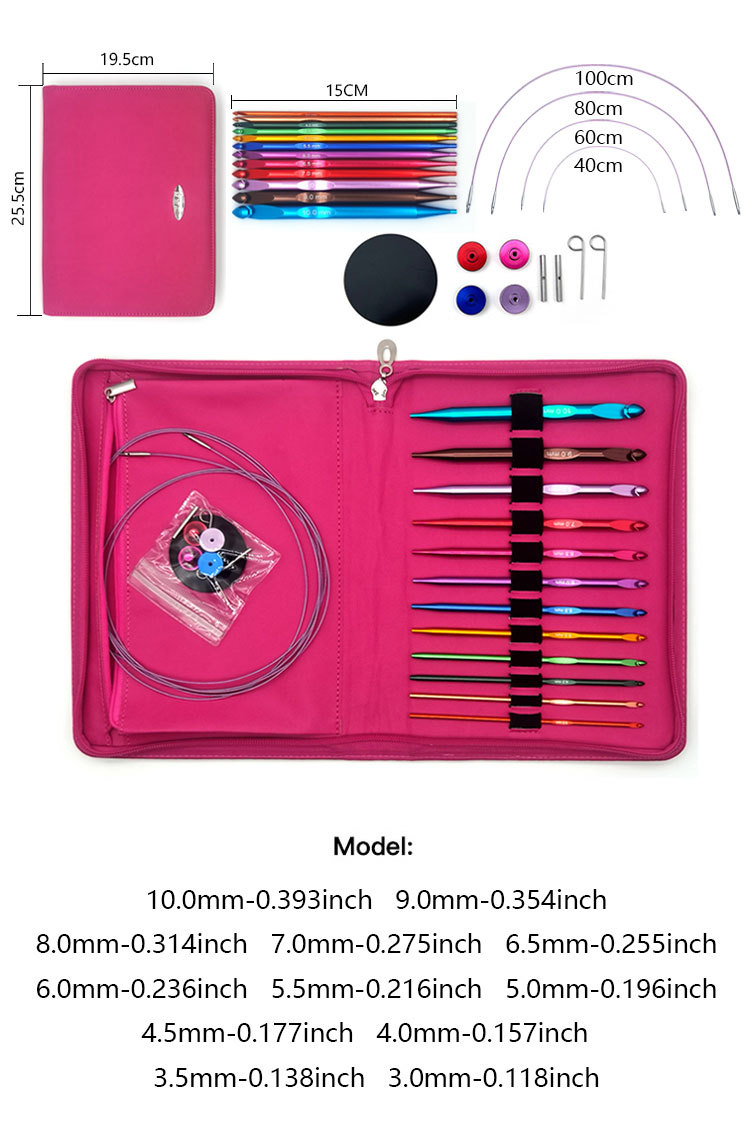 Herramientas de tejido transfronterizas de alúmina color alfombra de crochet desmontable crochet tunecina crochet conjunto de 12 pu