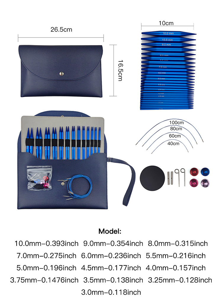 Agujas de suéter transfronterizas desmontables de cuerda agujas de suéter azul de óxido de aluminio desmontables de la aguja de anillo 13 paquetes