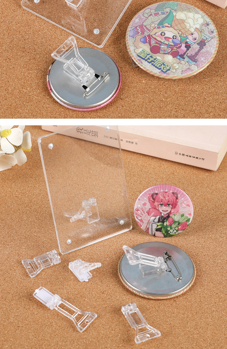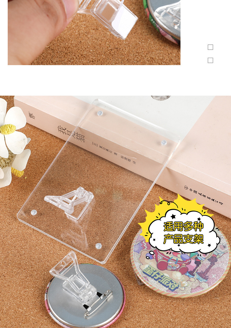 Acrílico transparente barra de soporte de exhibición de estaño insignia base de almacenamiento de grano con pin teléfono móvil