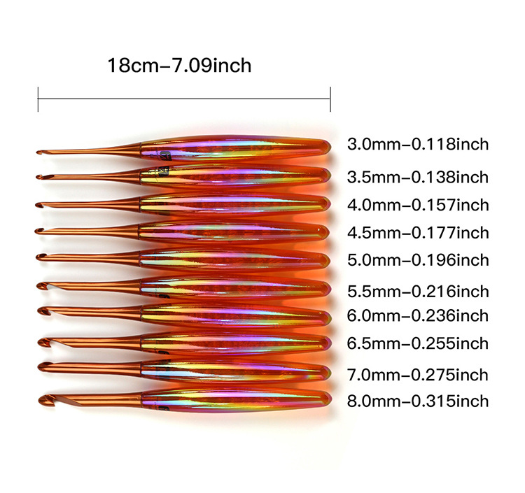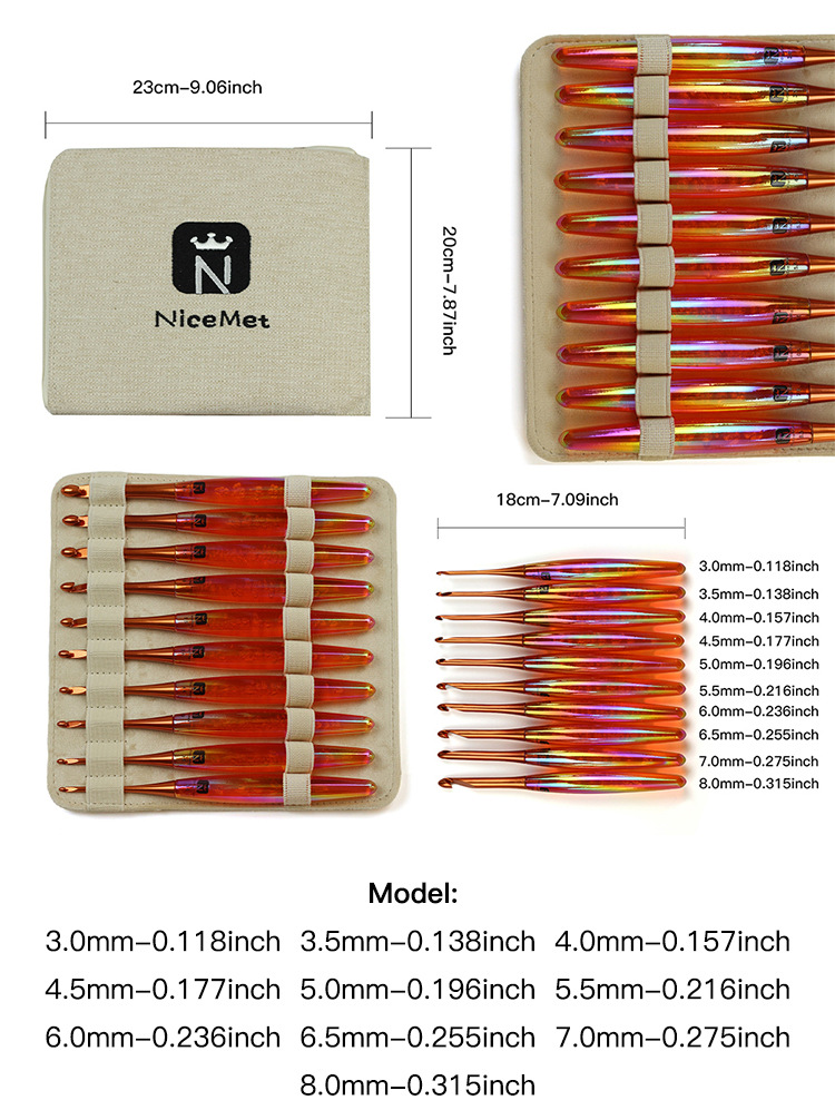 Aguja de trenzado transfronteriza acrílico galvanizado mango de crochet estilo chino pulido a mano un cuchillo de corte 10 agujas de corte