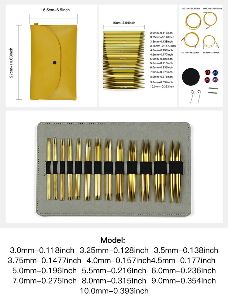 Herramientas de trenzado transfronterizas de alúmina dorada desmontable aguja de anillo 3.0 - 10.0mm13 tarjeta de pago bolsa de tarjetas PU