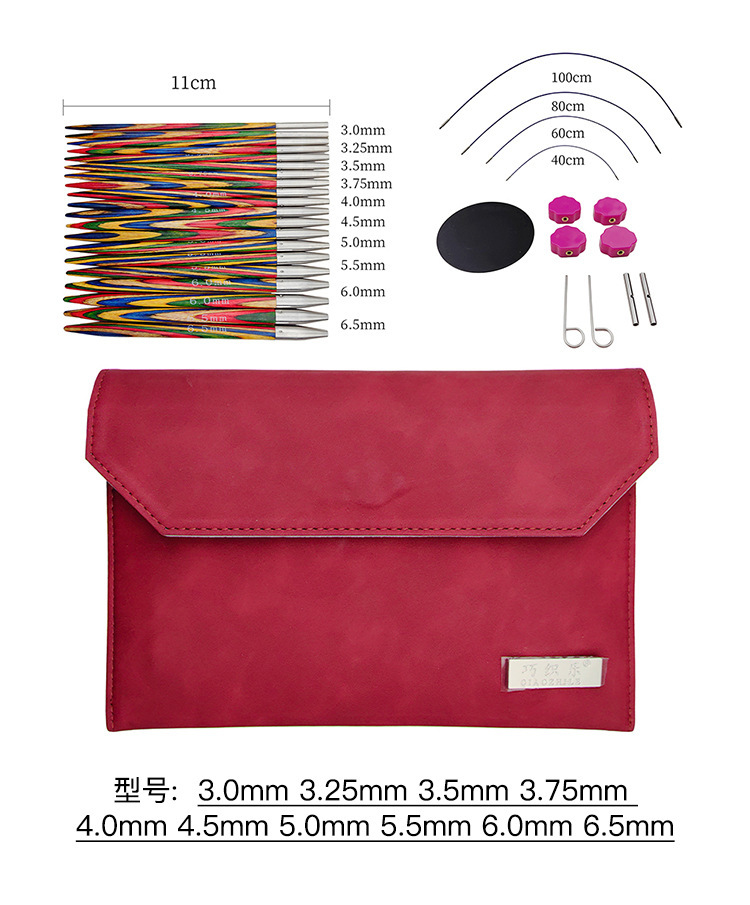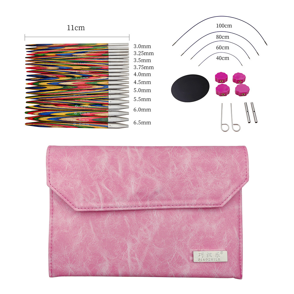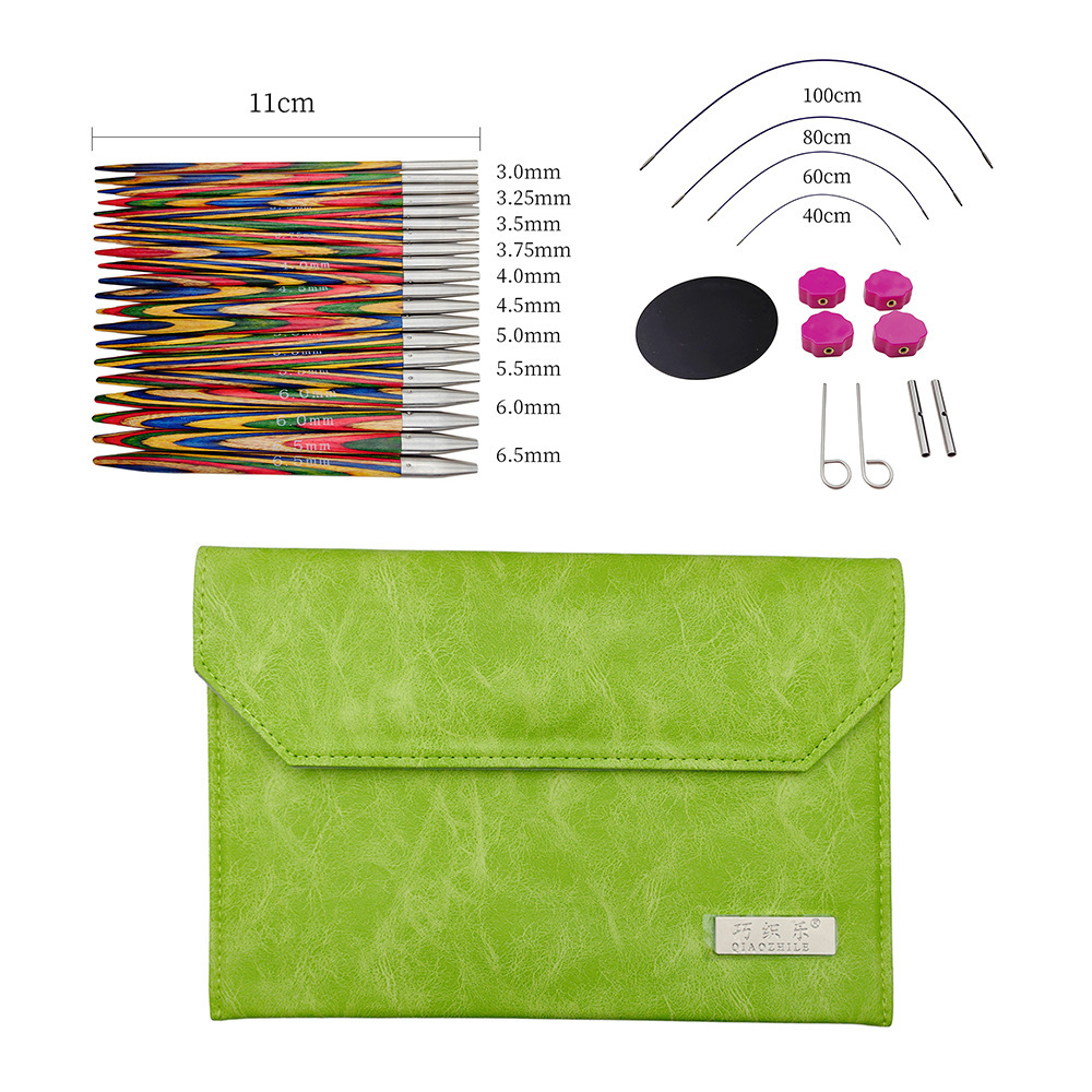 Herramientas de tejido nuevo color abedul madera sintética suéter aguja desmontable aguja de anillo un conjunto de 10 bolsas PU