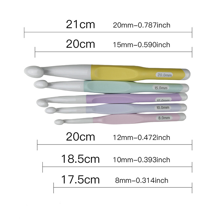 Mango blando transfronterizo TPR gancho de plástico ABS gancho bicolor gran tocando manta bufandas agujas hechas a mano 8.0-20.0mm