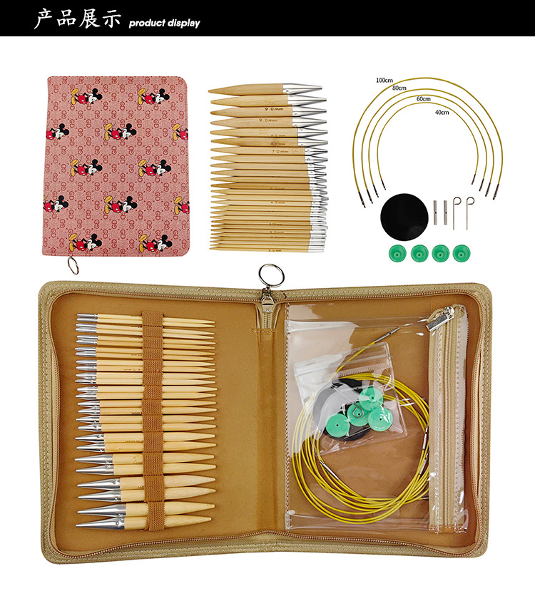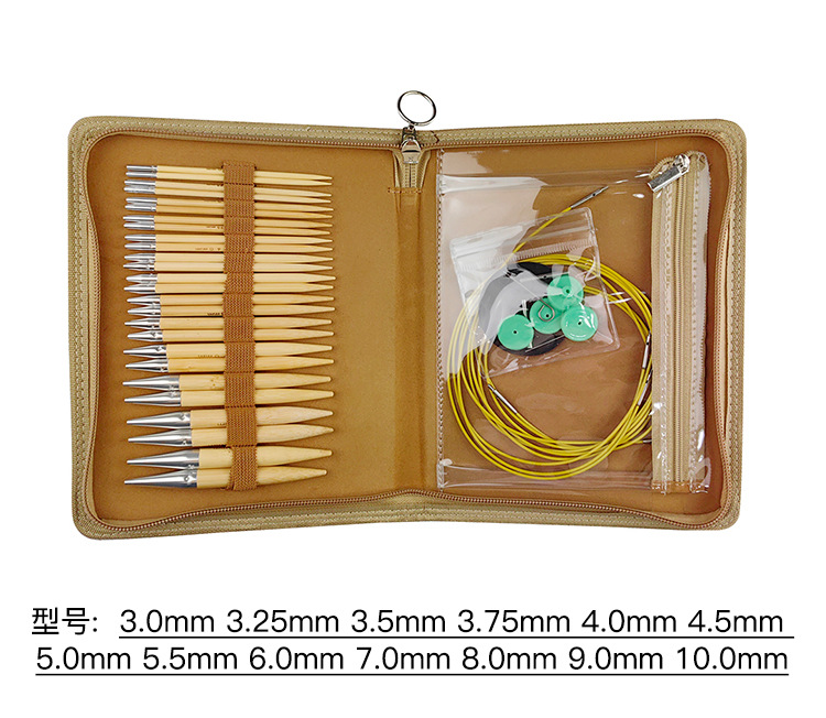 Herramientas de tejido aguja de suéter nuevo bambú blanqueado aguja de anillo desmontable aguja de anillo un conjunto de 13 paquetes de PU