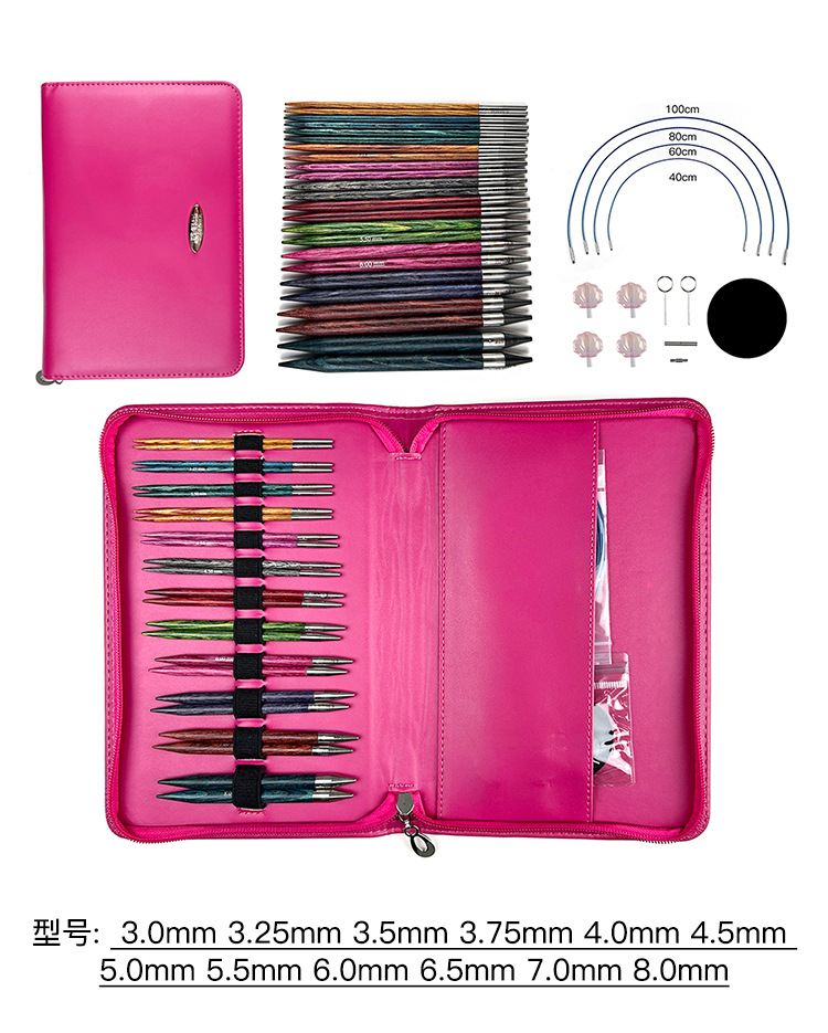Herramientas de tejido aguja de suéter madera sintética color fantasía pulido manual desmontaje aguja de anillo un conjunto de 12 pagos