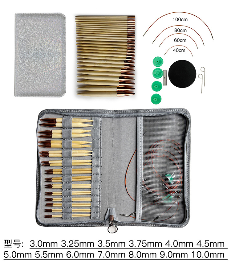 Agujas de suéter de oro rosa blanqueado de bambú aguja de aluminio desmontable aguja de anillo un conjunto de 13 paquetes de PU