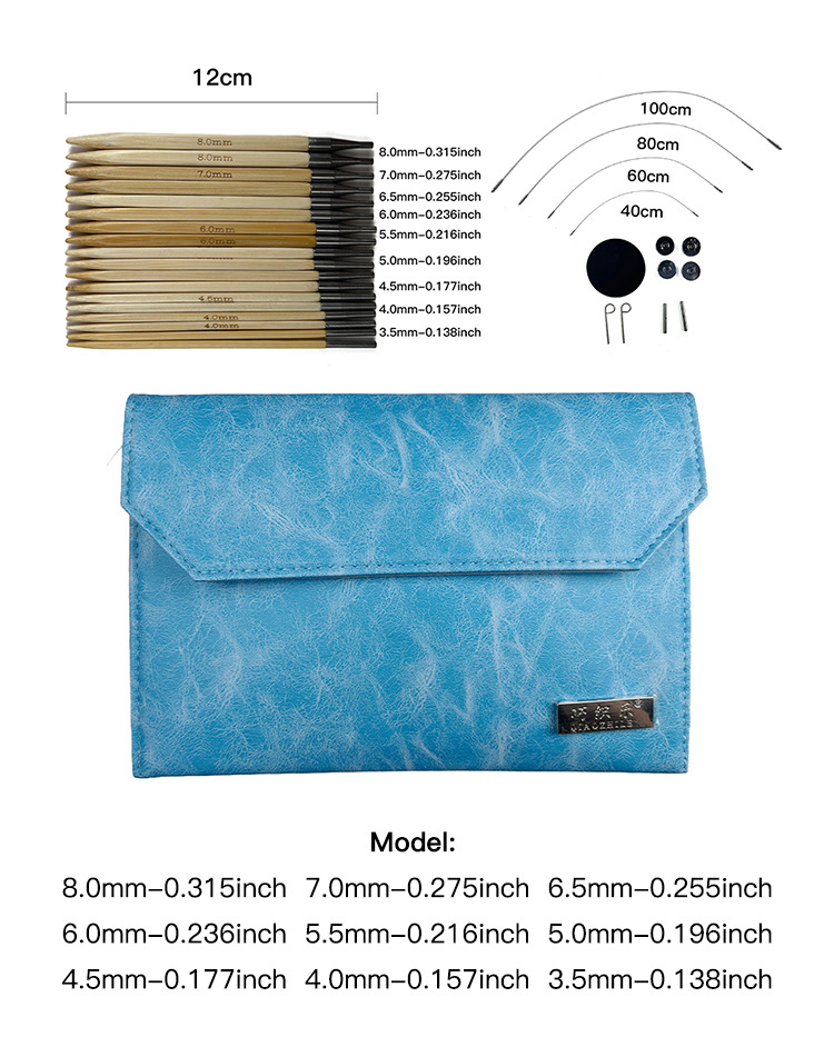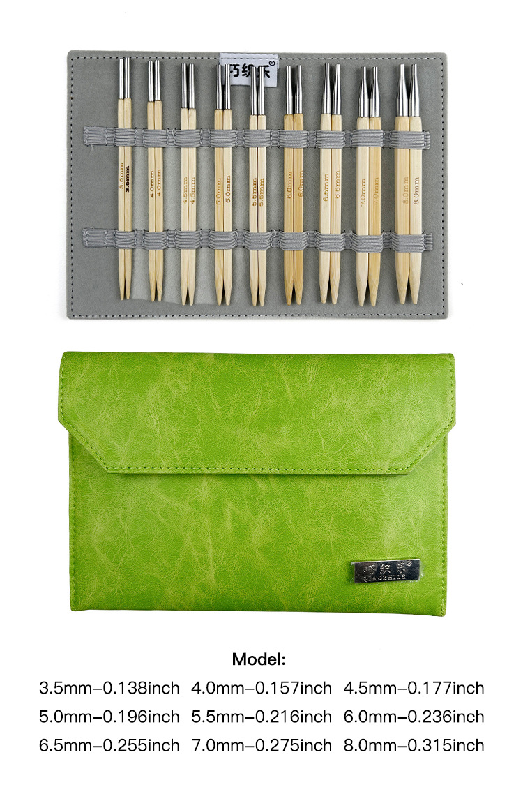 Agujas de suéter transfronterizas 9 cubo de aguja de anillo blanqueado de bambú desmontable aguja de anillo conjunto de 3.5 - 8.0mm