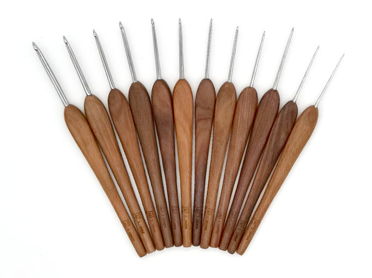 Transfronterizo DIY madera de sándalo verde mango de acero inoxidable ganchillo NiceMet mano pura pulida verde ganchillo 12 conjuntos