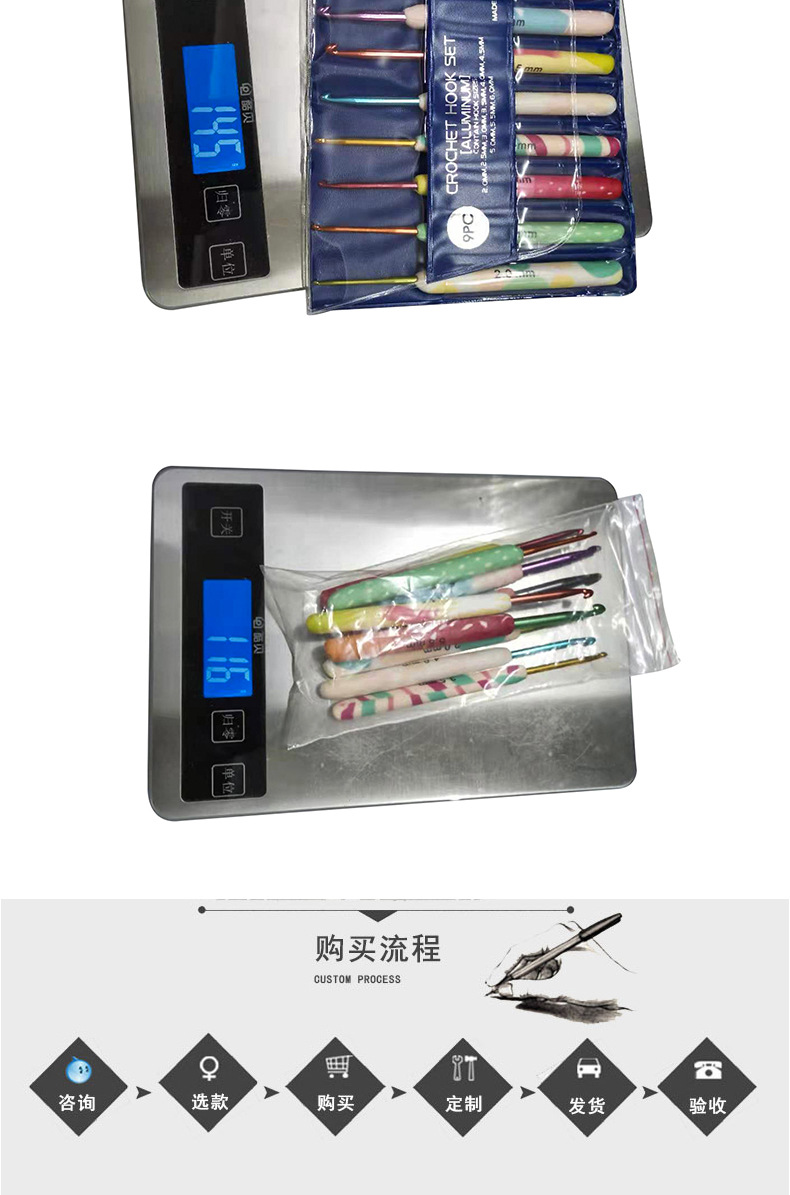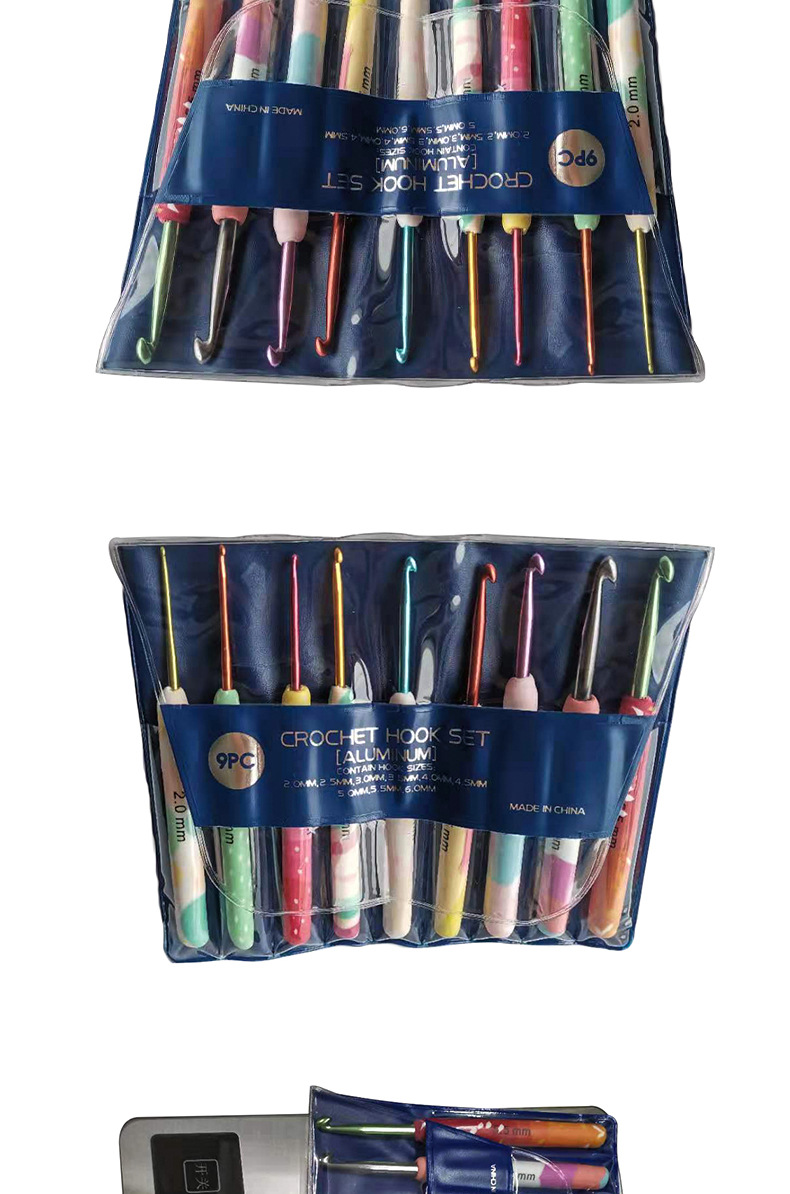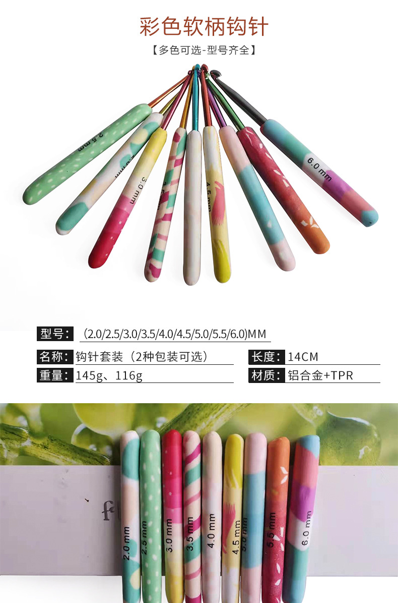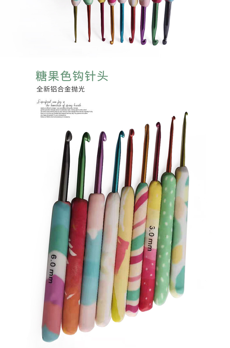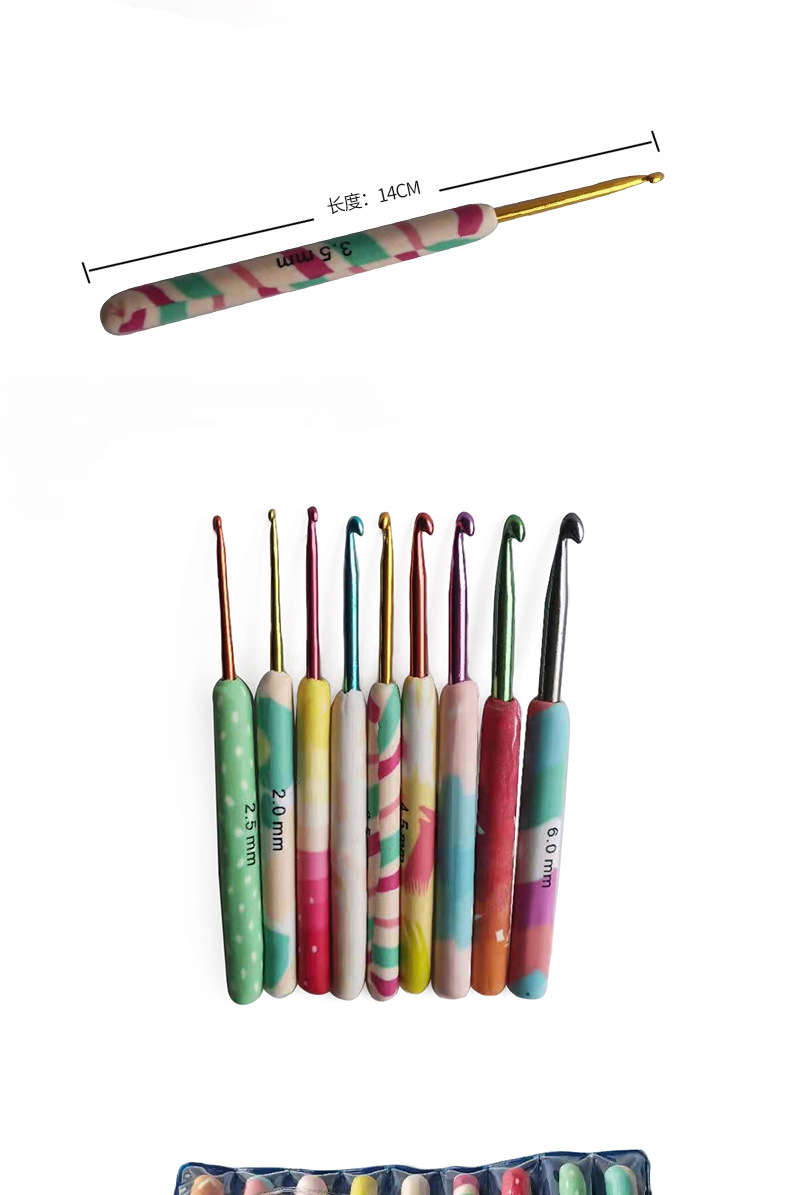 Herramientas de tejer aguja suéter suave cerámica mango color crochet suave mango crochet conjunto de 9 OPP bolsa de embalaje