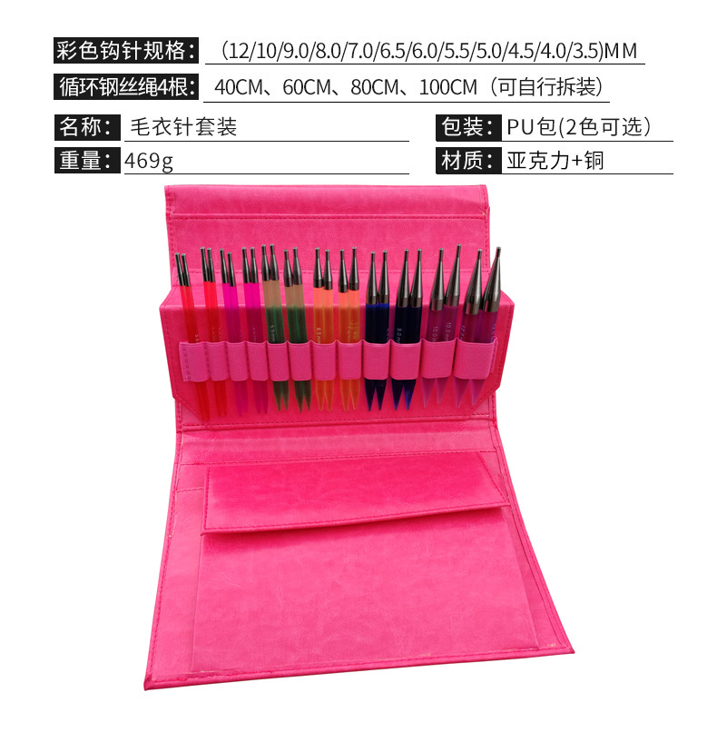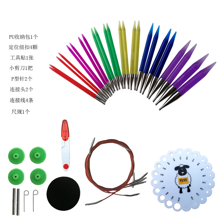 Herramienta de punto suéter aguja transparente acrílico desmontaje anillo aguja cuerda cambio anillo aguja conjunto de 12 pares PU embalaje