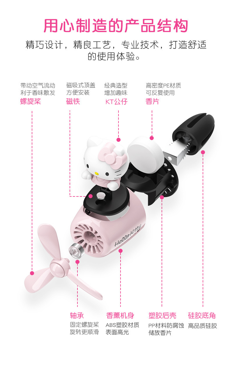 HELLO KITTY Hello Kitty coche aromaterapia dibujos animados chica salida de aire aromaterapia coche productos de decoración