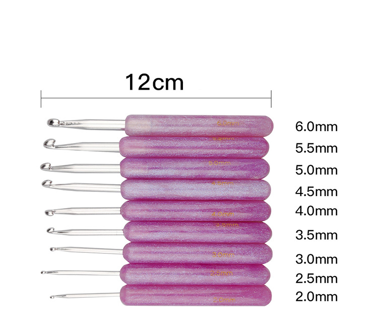 Herramientas de tejer mango de resina de aluminio crochet polvo transparente conjunto de 9 2.0-6.0 mmvc embalaje