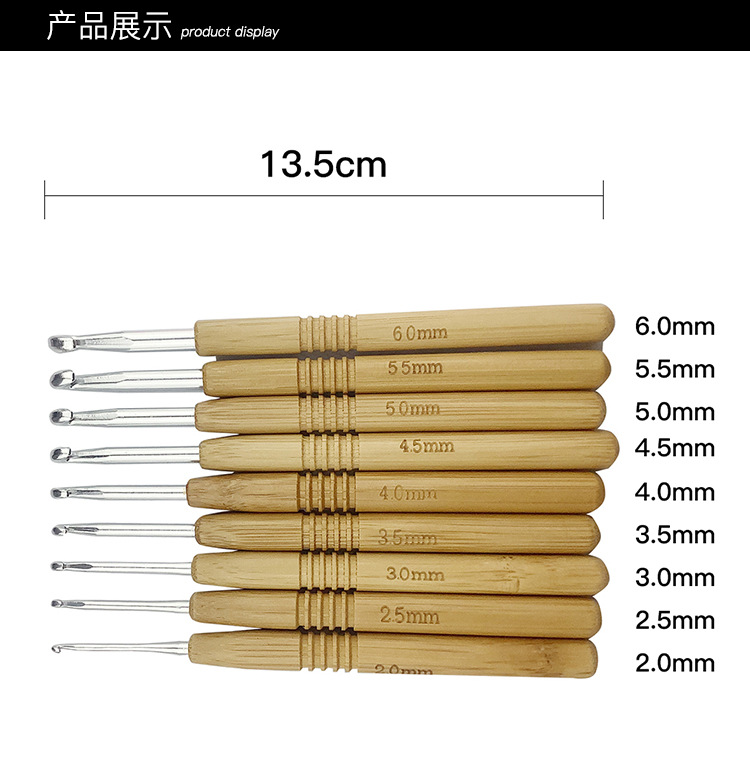 Herramienta de tejer suéter aguja nueva cilíndrica mango de bambú de aluminio crochet conjunto de 9 piezas 2. 0mm-6.0 mmvc embalaje