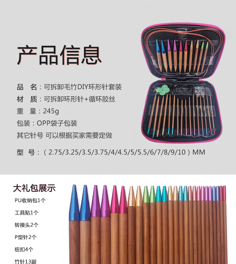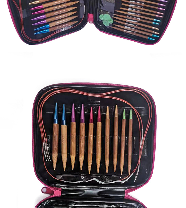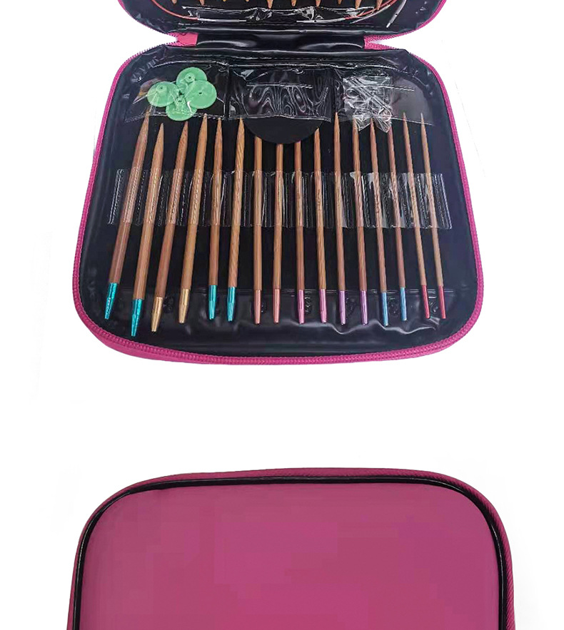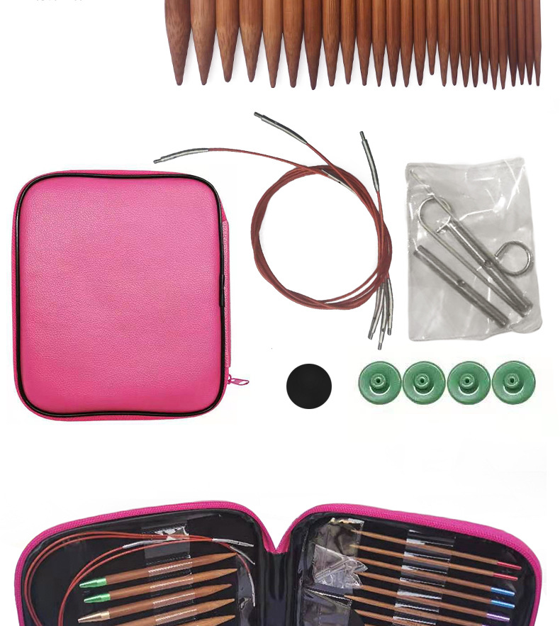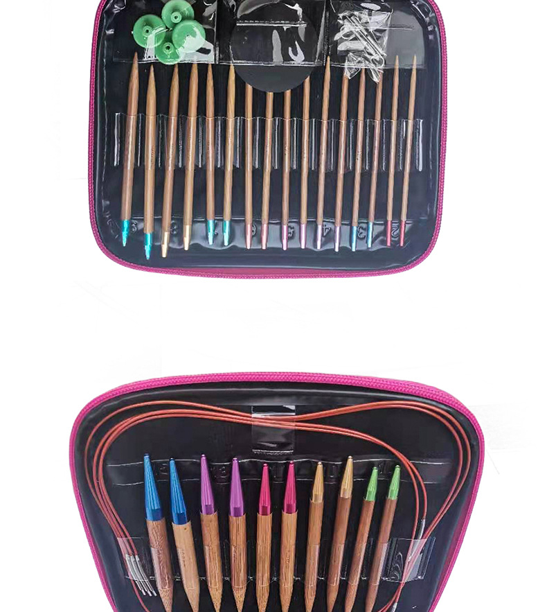 Herramienta de tejer suéter aguja anillo desmontable aguja color anillo de bambú carbonizado aguja conjunto de 13 pares de envases de La PU